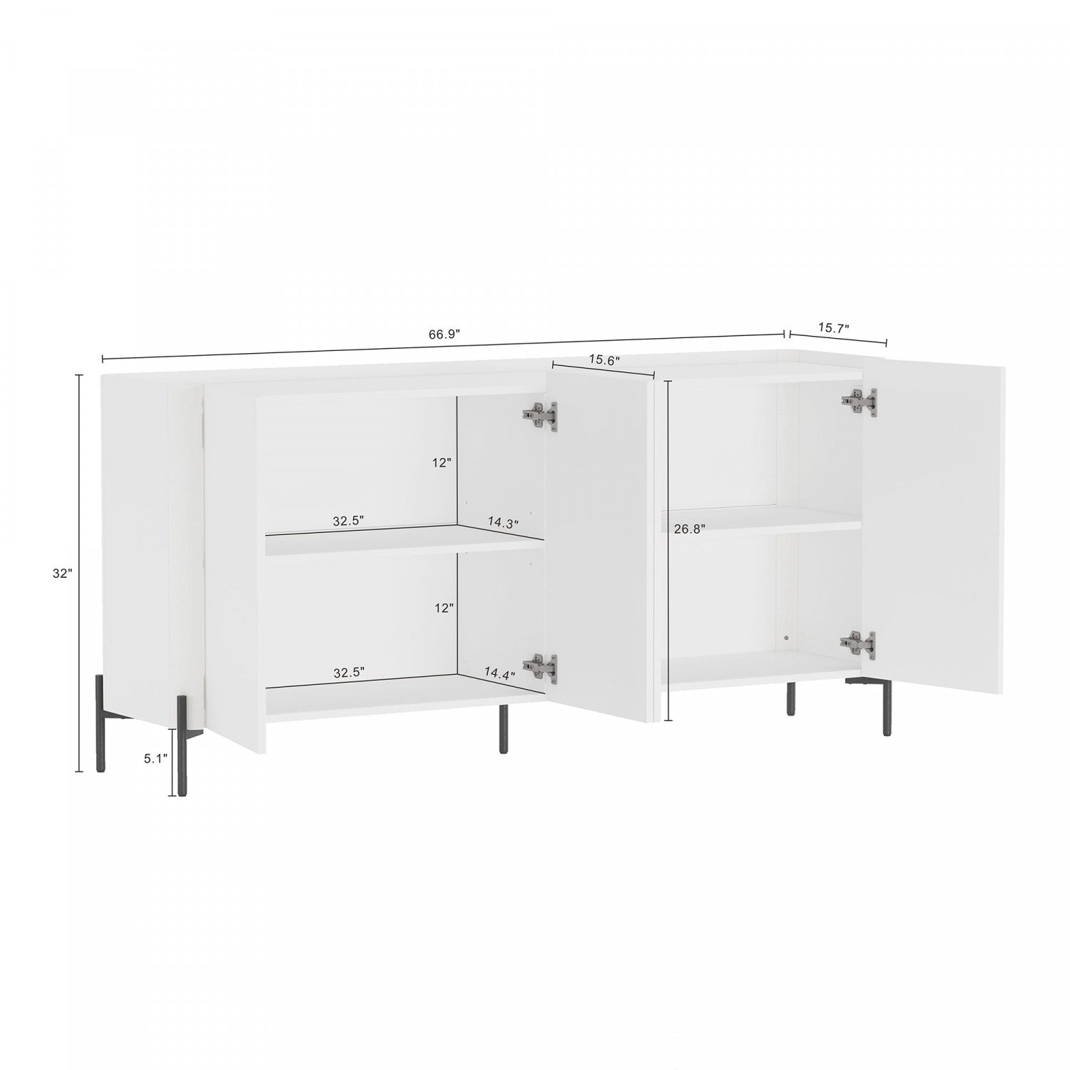 Abbey Modern 2-Piece Buffet and Accent Cabinet in White