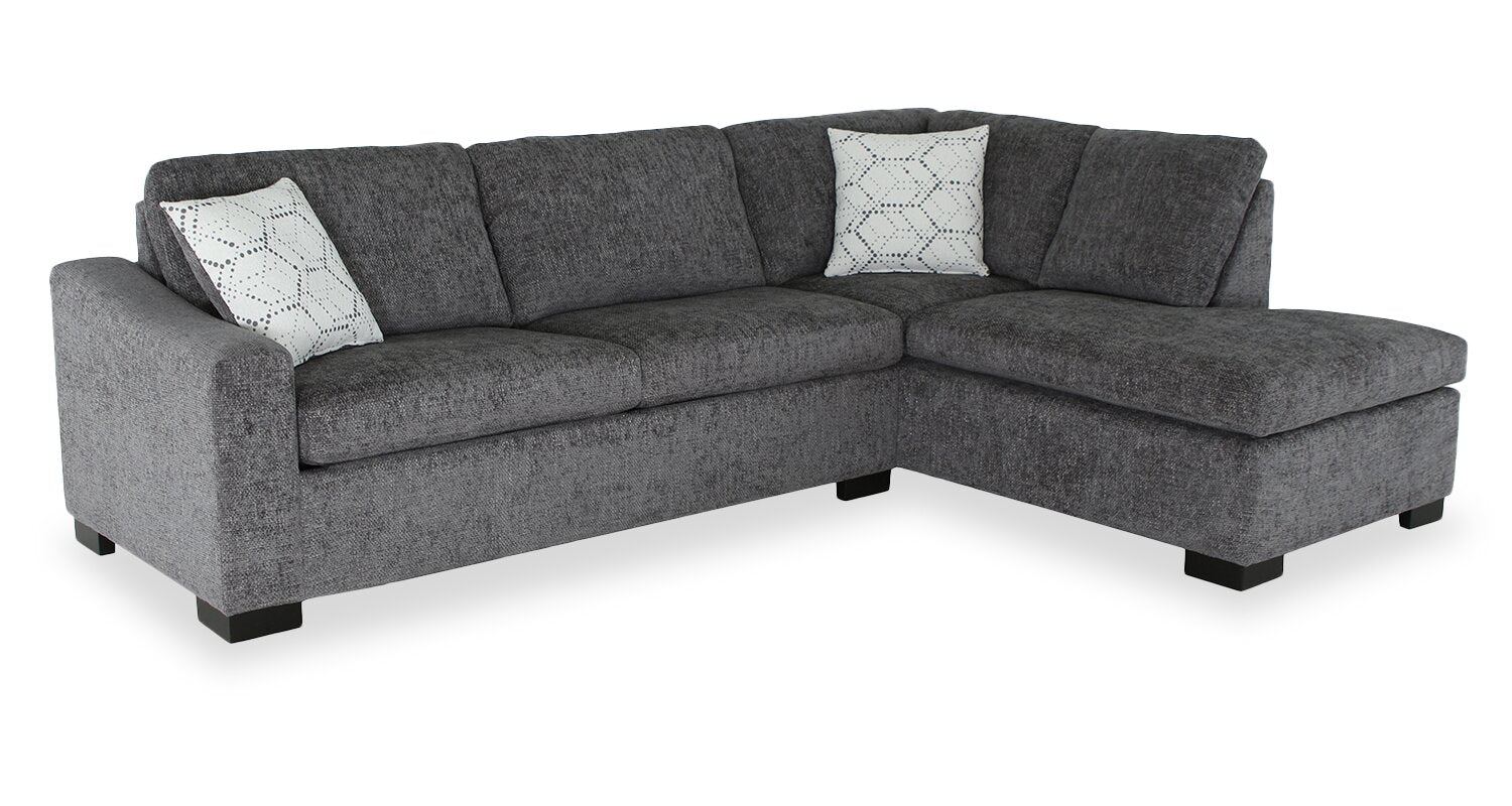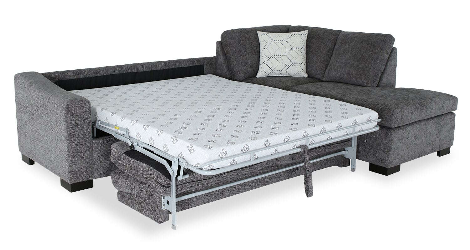 Made in Canada Legend 2-Piece Right-Facing Chenille Fabric Sleeper Sectional with Storage Chaise - Pepper Grey