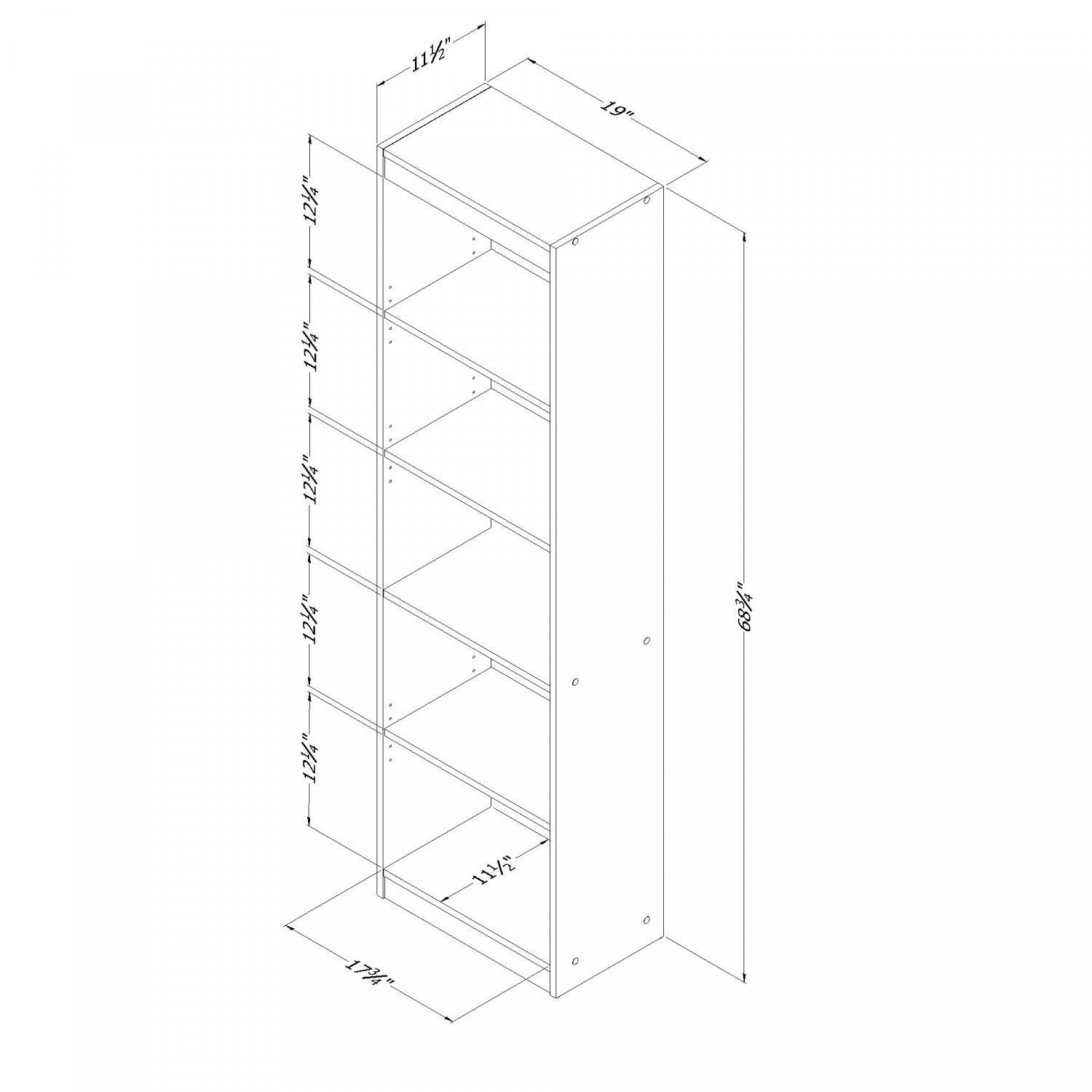Width: 19" (48.3 cm) Height: 68.75" (174.6 cm) Depth: 11.5" (29.2 cm)