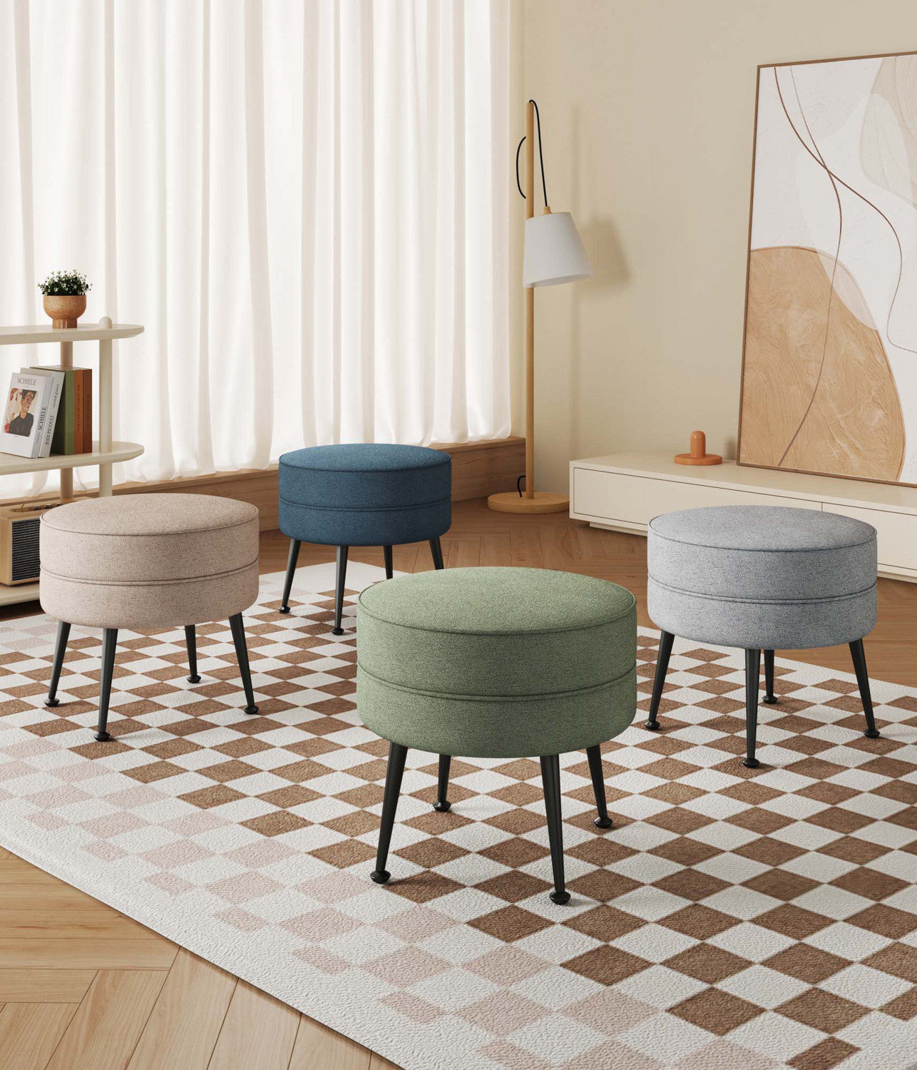 Bailey Mid-Century Modern 1-Piece Accent Ottoman in Blue, Gray, Wheat and Sage Green