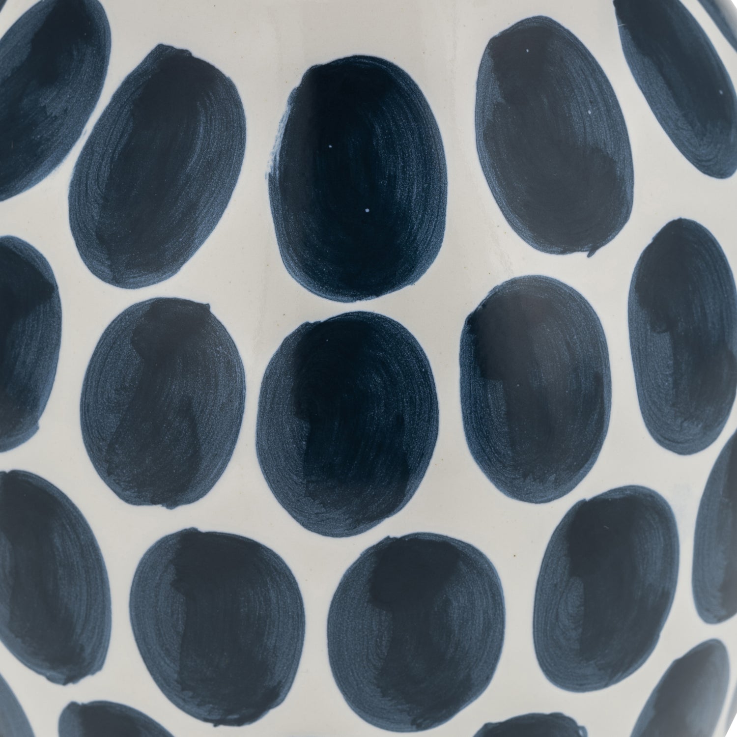 Ceramic 10" Navy Polka Dot Flower Vase - White