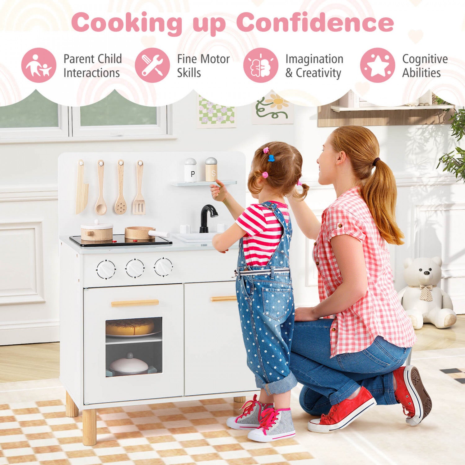 Costway Kids Kitchen Playset With Light Up Stove & Cooking Sounds Oven Sink Faucet White