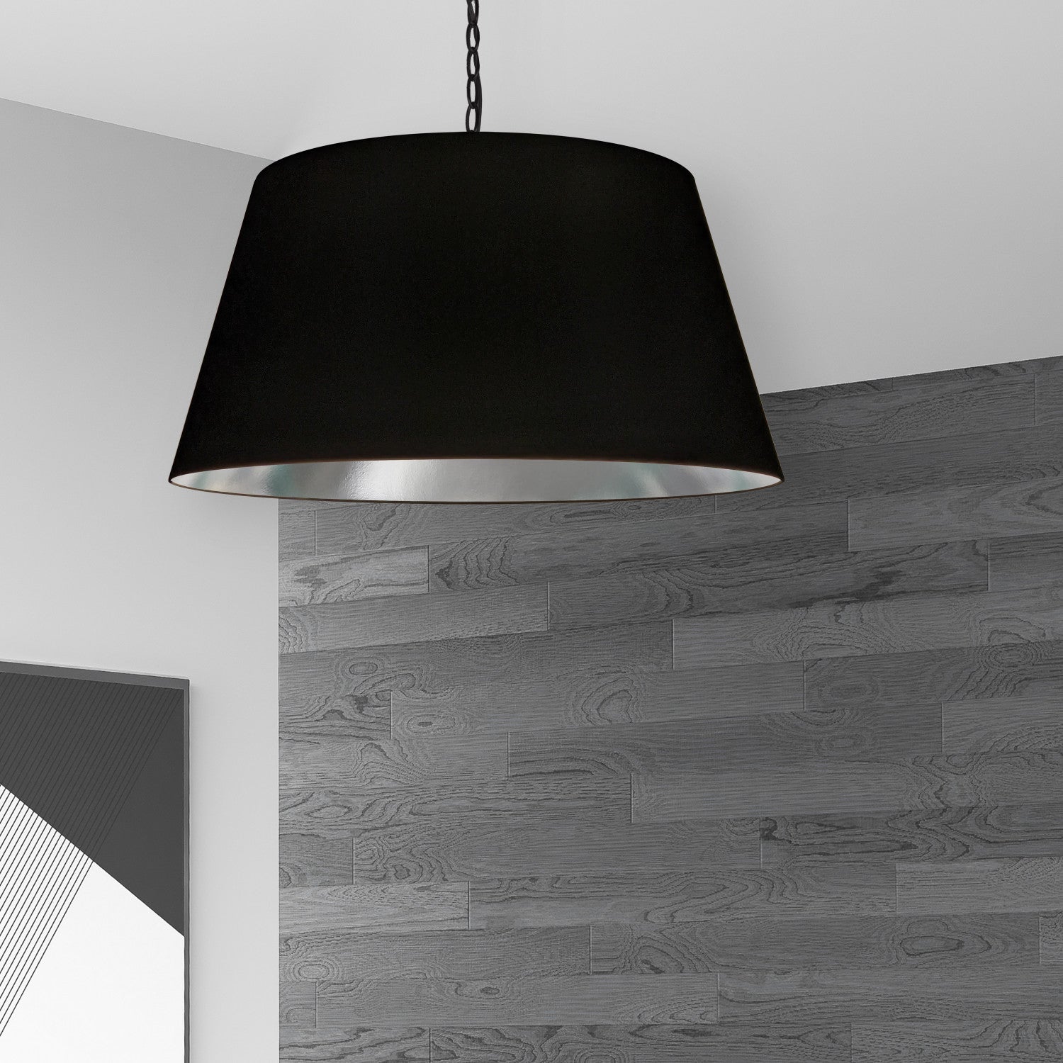 Dainolite Brynn 1 Light Pendant Large Black Finish Black/Silver Shade Lamp
