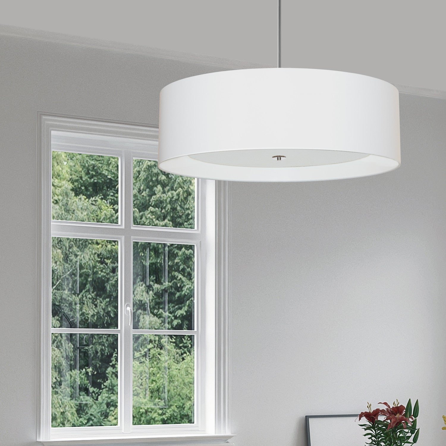 Dainolite Helena 4 Light Pendant 30" Dia Polished Chrome Finish White Shade White Diffuser Lamp