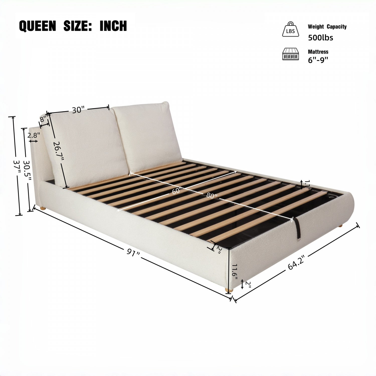 Diana Ottoman Hydraulic Lift Storage Platform Bed with Luxurious Boucle Upholstered and Sturdy Storage,Queen Size,White Queen Bed