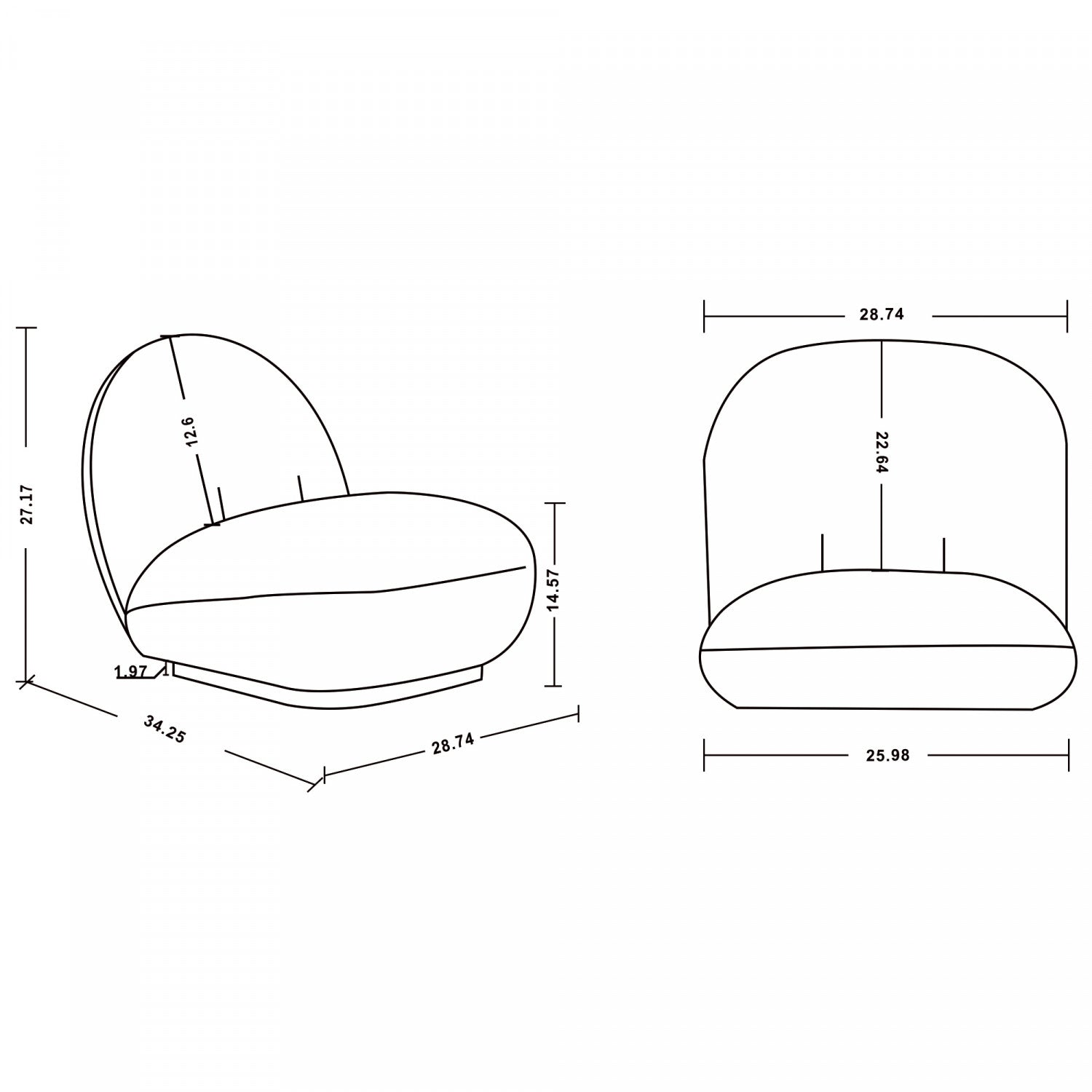 Width: 28.74" (73.0 cm) Height: 27.17" (69.0 cm) Depth: 34.25" (87.0 cm)