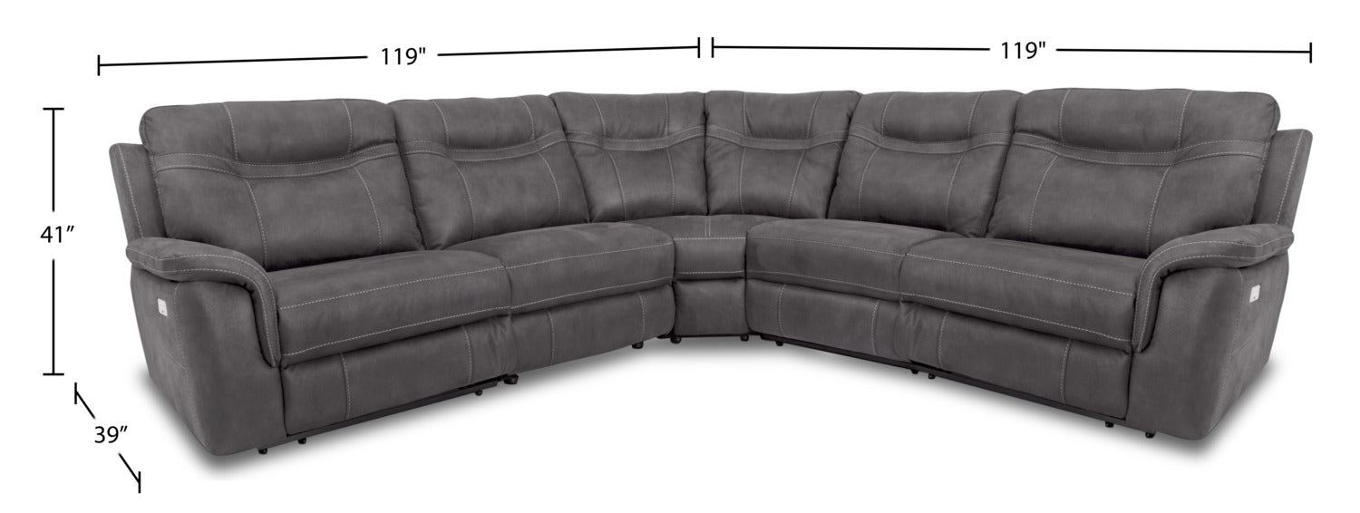 Floy 5-Piece Faux Suede Power Reclining Sectional with Power Headrests and USB Port - Grey