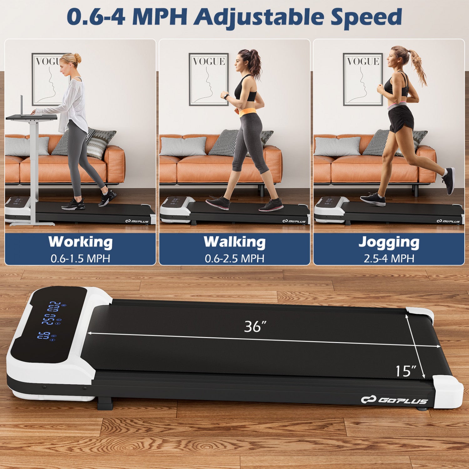 Goplus 2.5hp Under Desk Treadmill For Home And Office Remote Control Led Display White