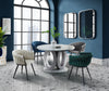 Introduce a little artistry to your dining room with the exquisite Hildy Collection. This stylish arm chair is a fantastic way to spruce up your modern dining area thanks to its contemporary low profile. The barrel design is cloaked in soft blue velvet upholstery that weaves around the frame with a unique braided effect. Despite its artistic appearance, the contoured back and arms are padded with foam, as is the seat, providing ample cushioning and support. Metal framing and angled black powder-coated metal legs guarantee long-lasting durability, allowing the Hildy to effortlessly blend practicality and elegance as it becomes your dining room’s new statement piece. Other colours also available.