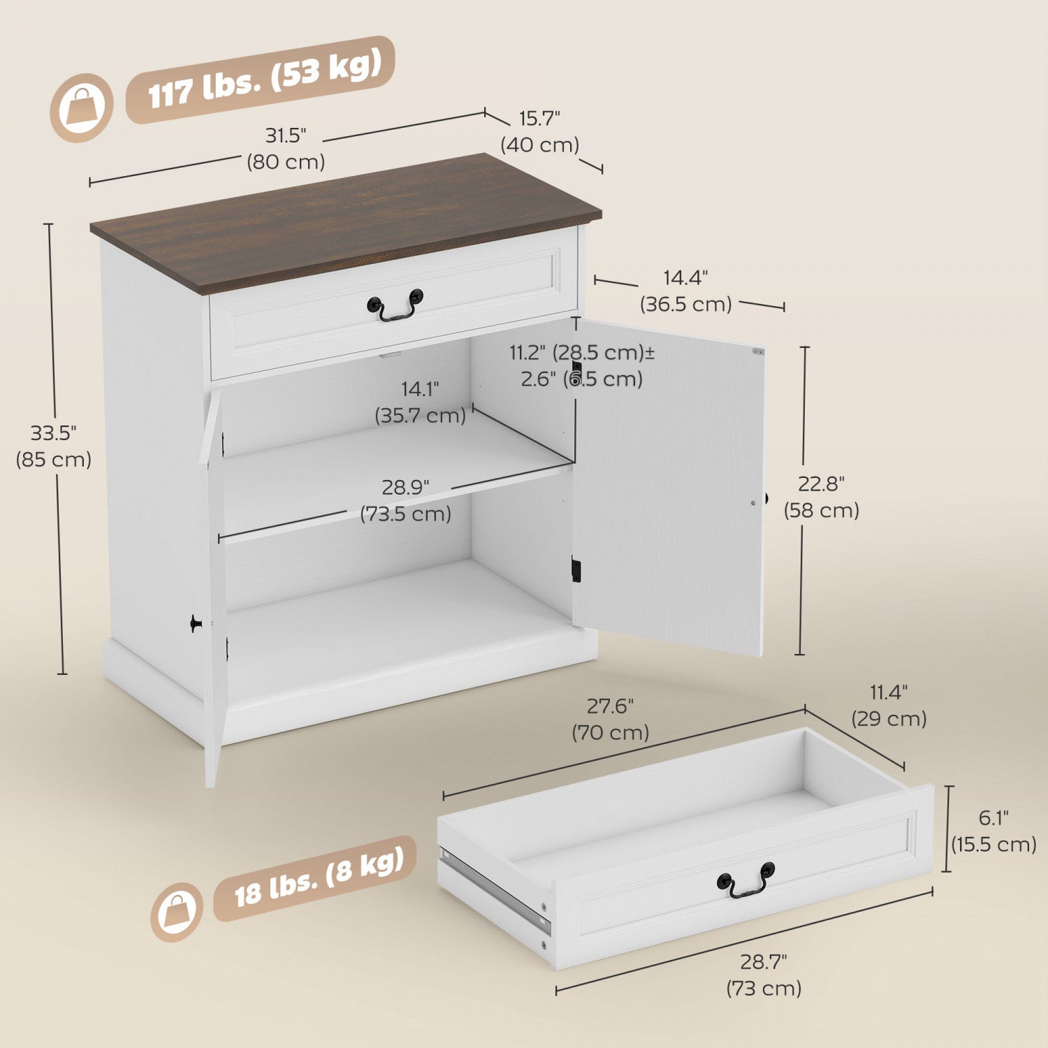 HOMCOM Buffet Cabinet 32" Farmhouse Sideboard with Thick Top Drawer White