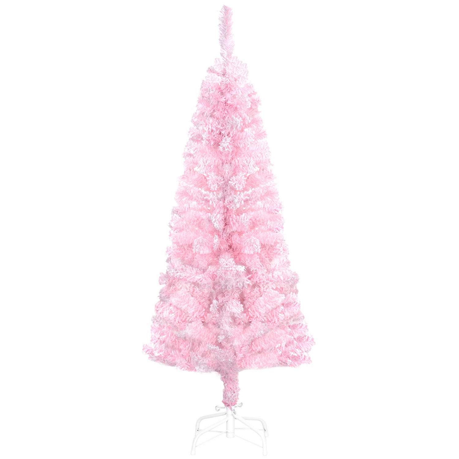 Homcom Snow Flocked Pencil Artificial Christmas Tree With Steel Base Pink