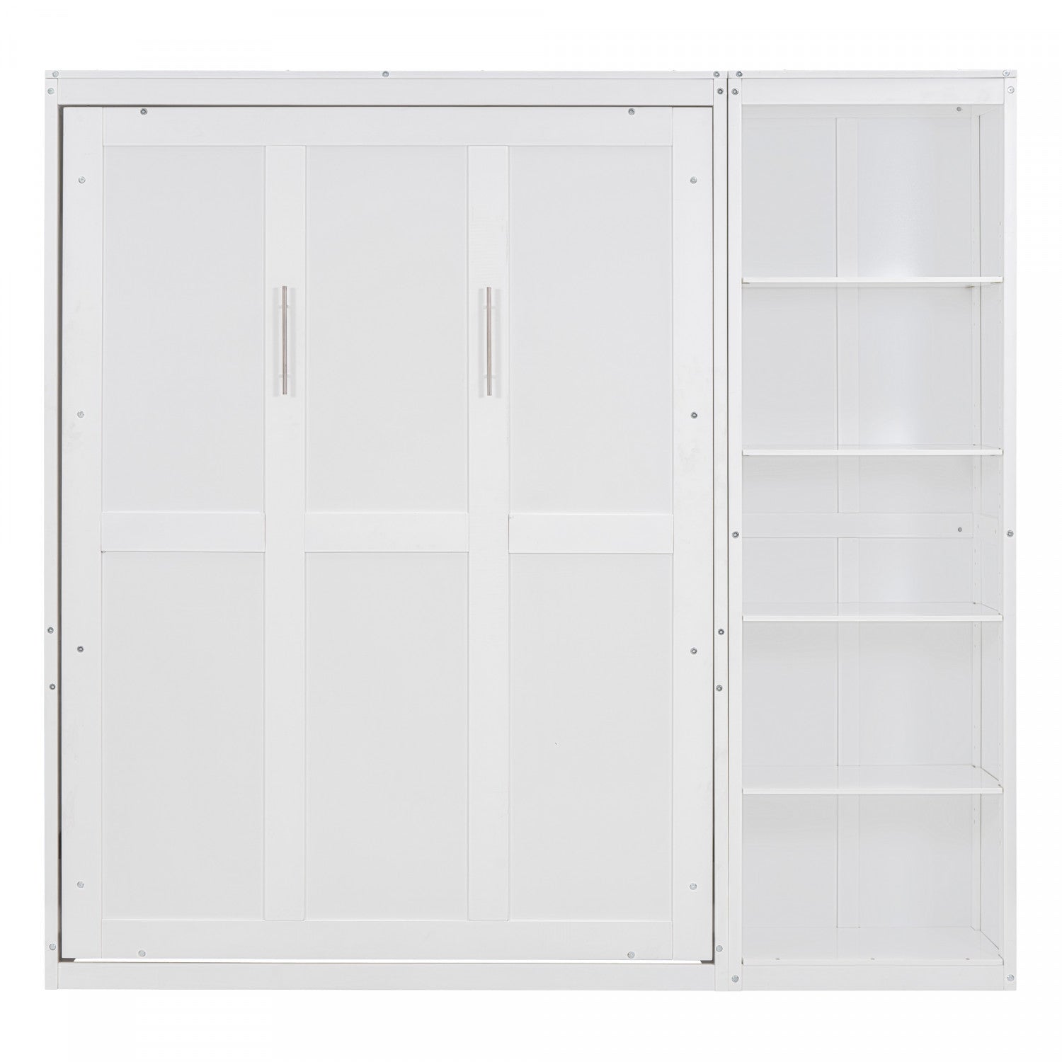 The full murphy bed offers the perfect balance of style and function for small-space living. This fold-away wall bed includes multiple open shelves, providing extra storage while maximizing floor space. It’s ideal for multipurpose rooms like guest rooms, studios, or home offices. The durable mdf+lvl build ensures long-term use, while flexible slats add comfort. Easy to operate with pull handles and a flip-down leg. Mattress not included. Some assembly required with detailed instructions provided.
