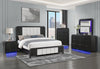 Kaleo Panel Bed with Headboard & Frame, LED, Fabric Panels, Modern, Black - King Size