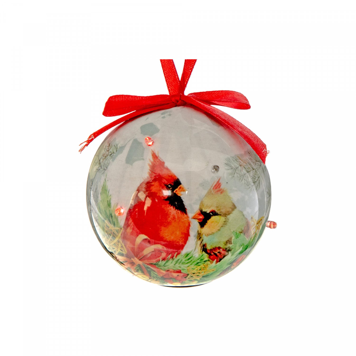 LED Ornament with Ribbon Cardinal Couple - Set of 12 Christmas Ornaments