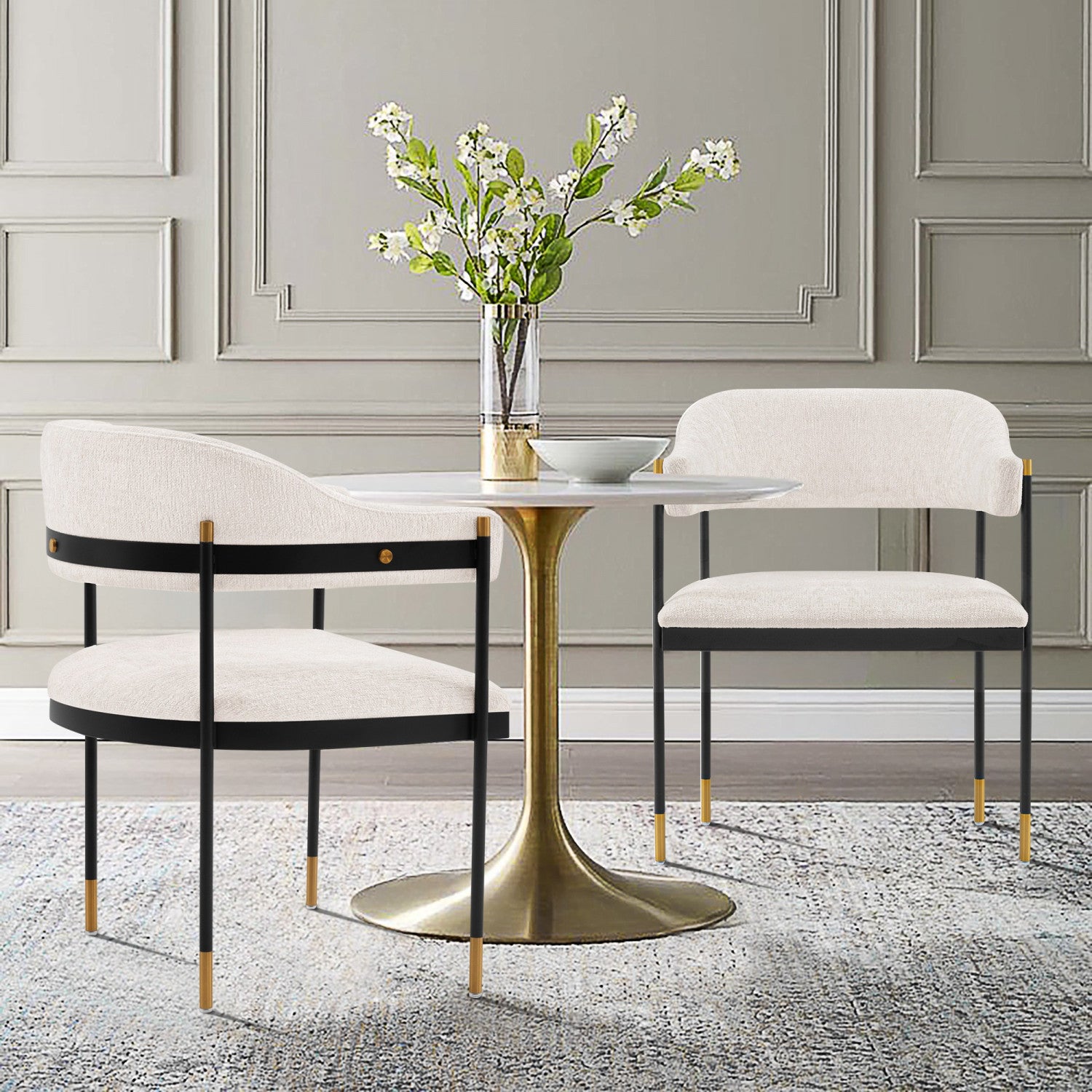 Lia Modern Metal Chenille Armchair in Cream - Set of 2 Dining Chair