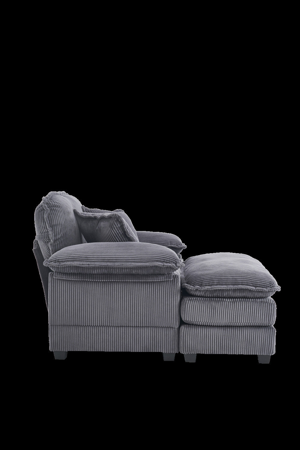The Extra-Large Reclining Cloud Sofa delivers modern comfort and versatile style for living rooms, apartments, and offices. Upholstered in soft corduroy, it offers a cozy texture with excellent breathability and durability. The double-layered seat cushion combines foam and spring support for a plush, cloud-like seating experience. Designed for single-person relaxation, it includes two soft cushions and a movable ottoman that adapts to your space, providing comfort for lounging, reading, or movie nights.