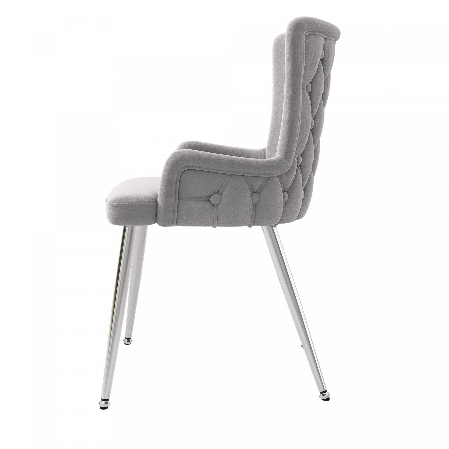 Luna Velvet Dining Chairs with Tufted Upholstered and Gold Metal Legs Set of 2, Grey