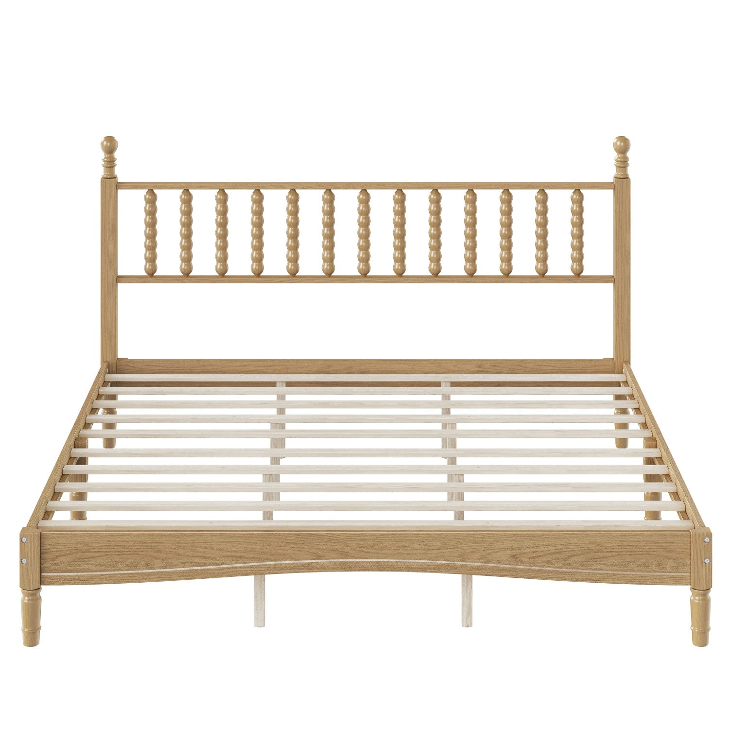 Oliver Retro Wood Platform Bed with Gourd Shaped Headboard and Sturdy Wooden Slat Support,King Size,Natural King Bed