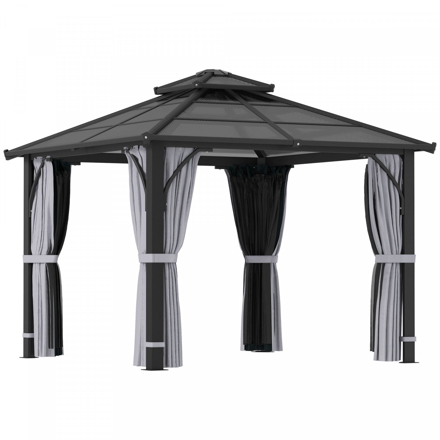 Outsunny 10' X 10' Hardtop Polycarbonate Gazebo With Netting And Curtains