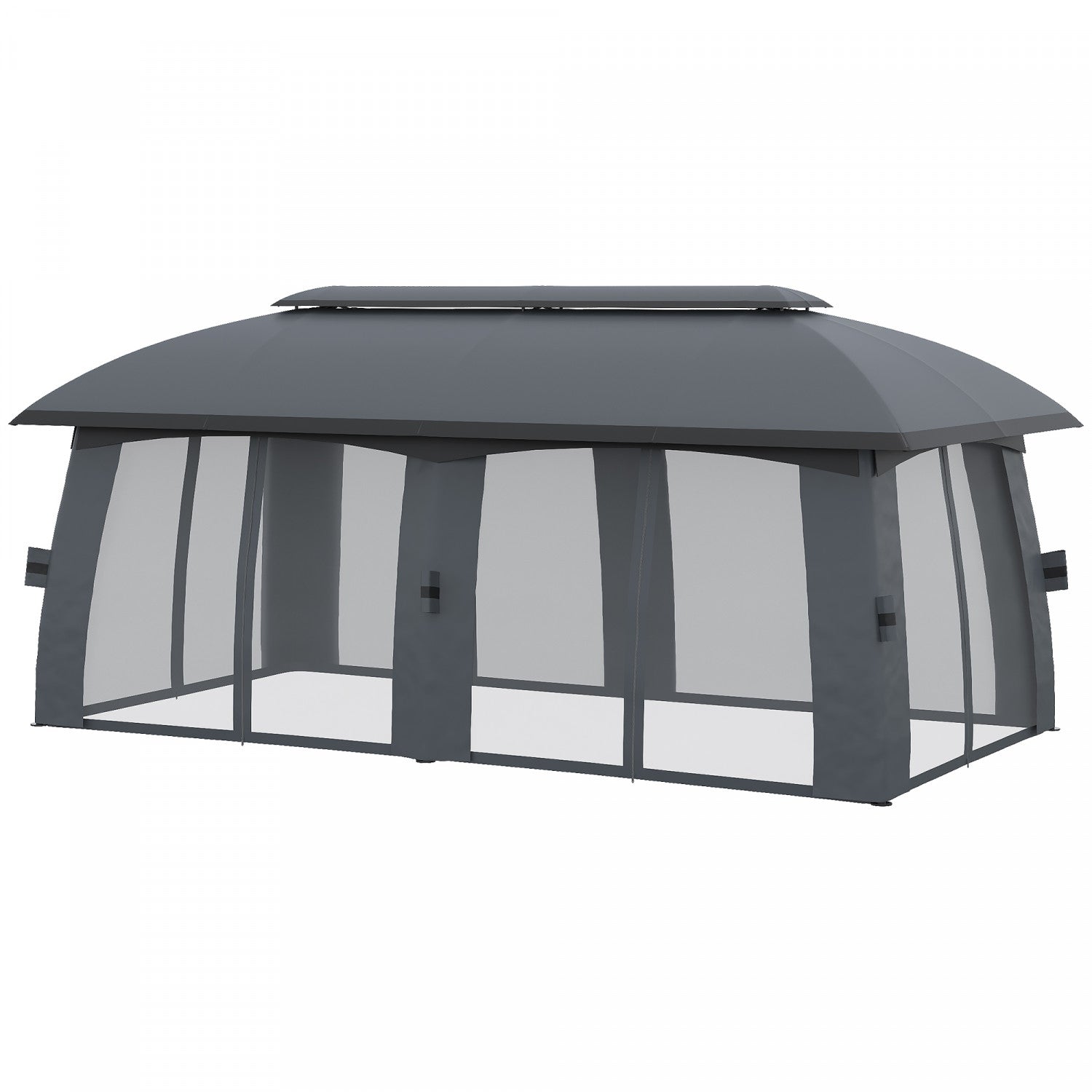 Outsunny 10' X 20' Patio Gazebo, Outdoor Gazebo Canopy Shelter With Netting, Vented Roof, Steel Frame For Garden, Lawn, Backyard And Deck, Dark Gray