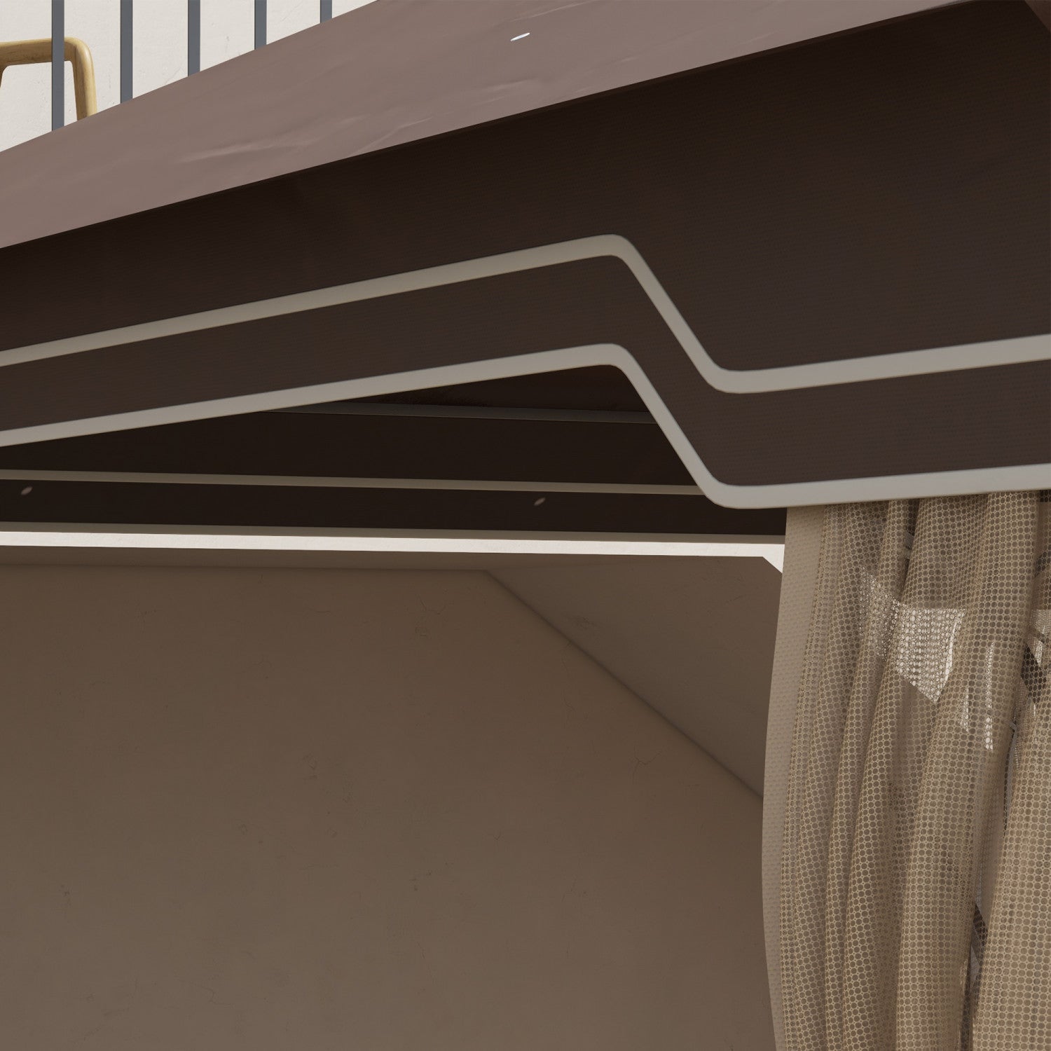 Outsunny 12' X 10' Patio Gazebo Outdoor Canopy W/ 2-tier Roof, Nettings
