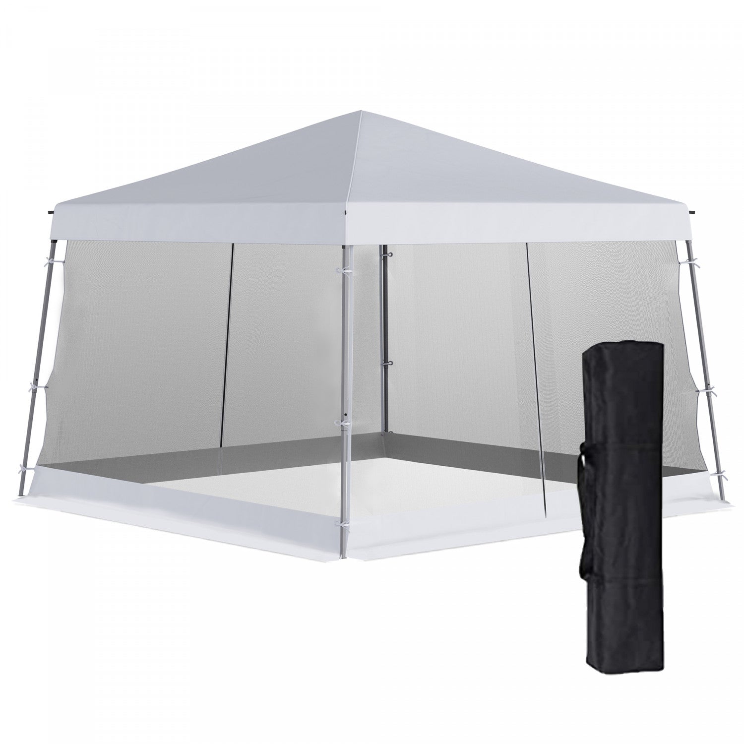 Outsunny 12' X 12' Pop Up Gazebo, Foldable Canopy Tent With Carrying Bag, Mesh Sidewalls And 3-level Adjustable Height For Outdoor, Garden, Patio, Party, White