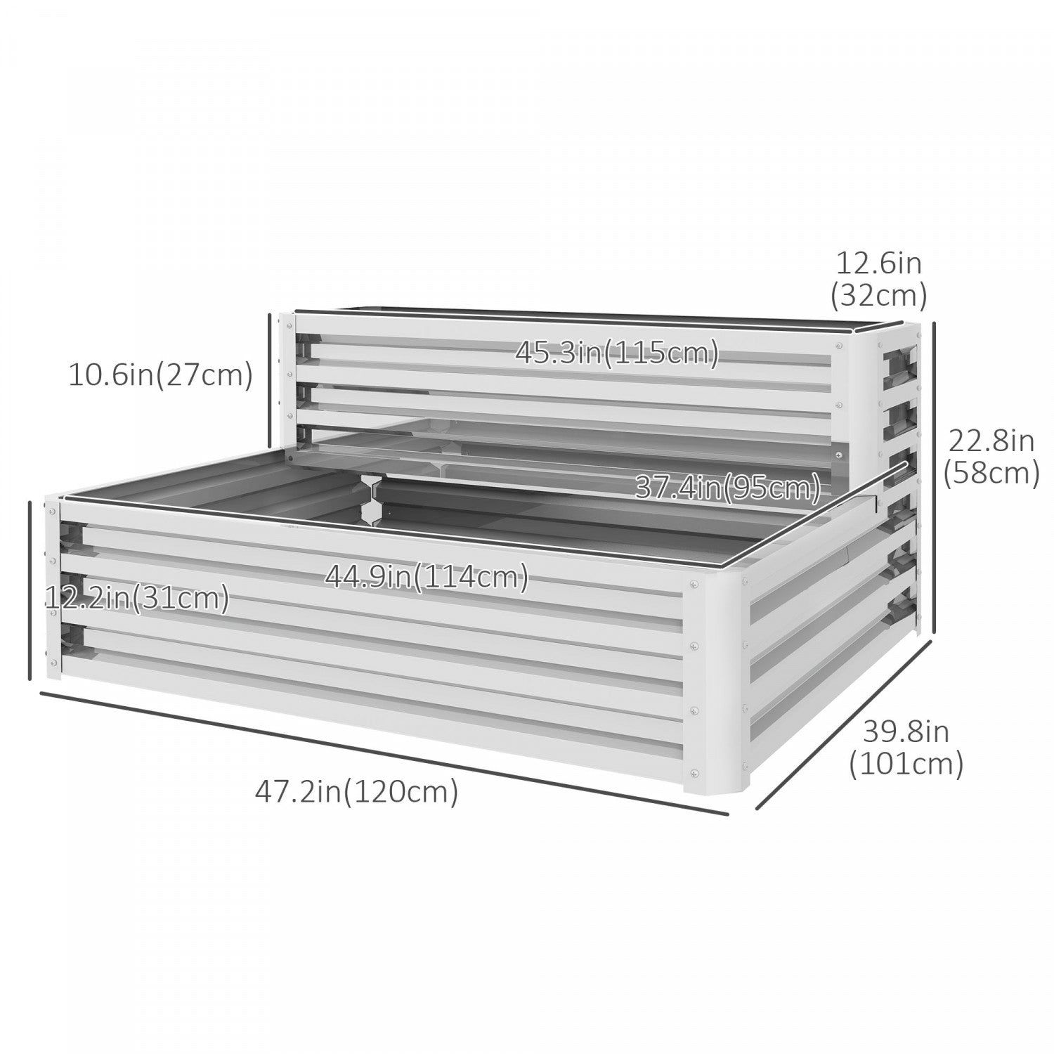 Outsunny 2 Tier Raised Garden Bed, 47" X 40" X 23'' Galvanized Steel Planter Box For Vegetables, Flowers And Herbs, Silver