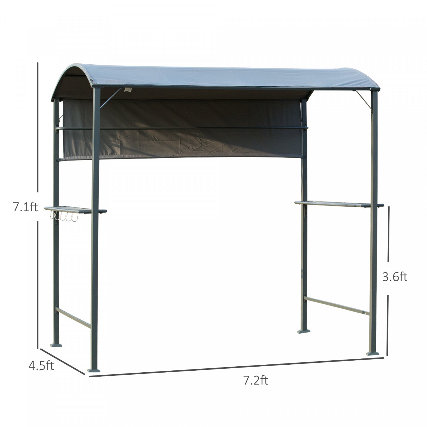 Outsunny 7x4.5ft Outdoor Bbq Gazebo Tent Metal Frame Garden Grill Canopy Sunshade Backyard Portable Shelter With Side Awning 2 Shelves And 5 Hooks Grey