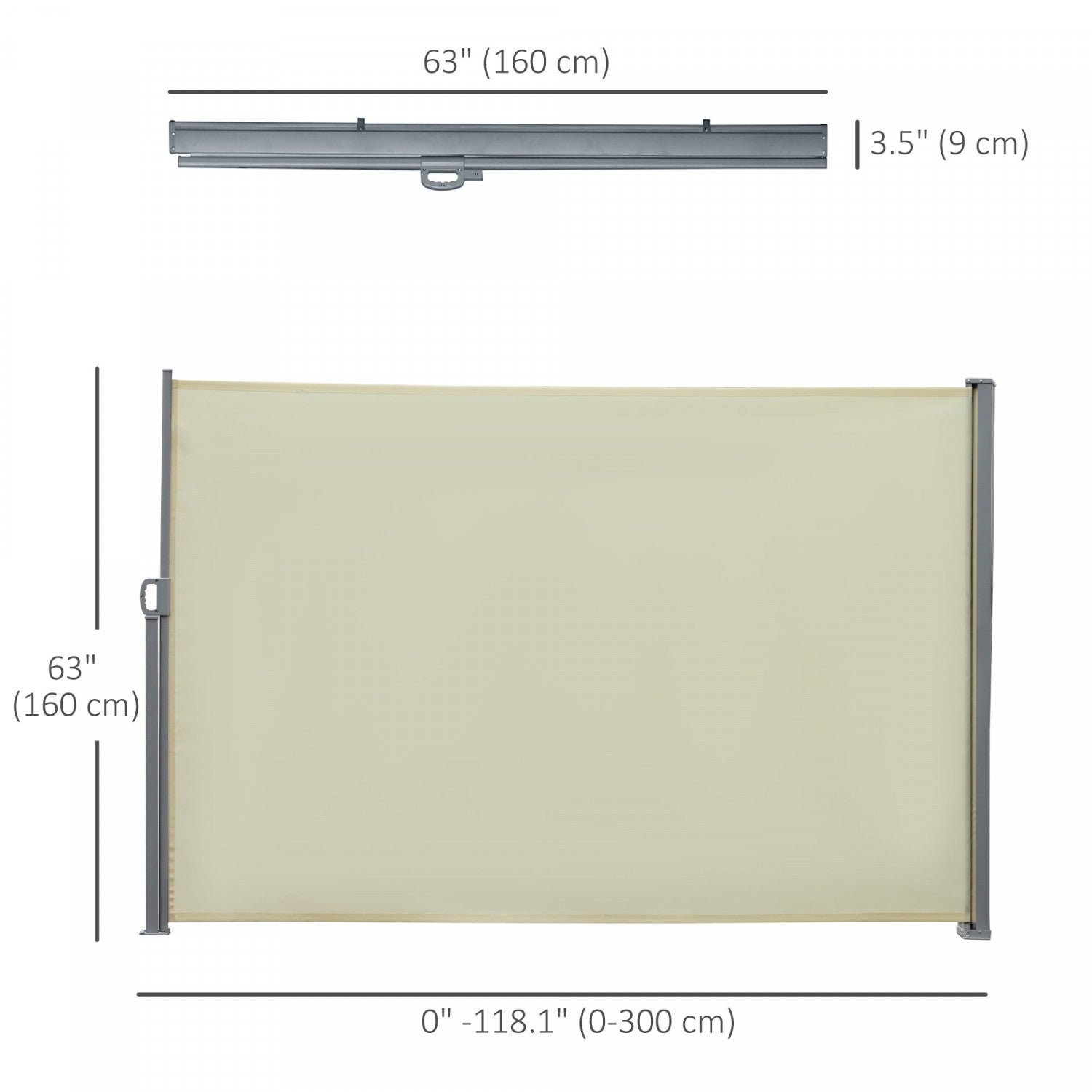 Outsunny Double Retractable Side Awning 236" X 63" Patio Screen Cream White