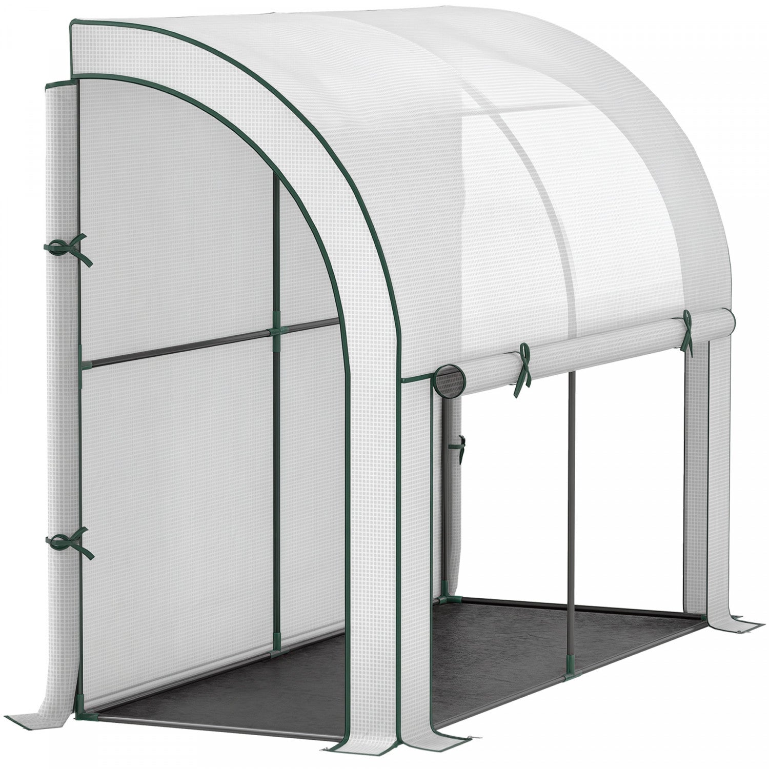 Outsunny Lean-to Greenhouse with PE Cover, Gardening Green House, White