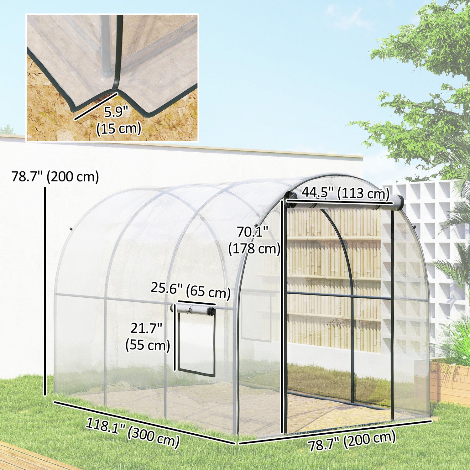Outsunny Polytunnel Greenhouse with Mesh Window, Grow House Tent, Clear
