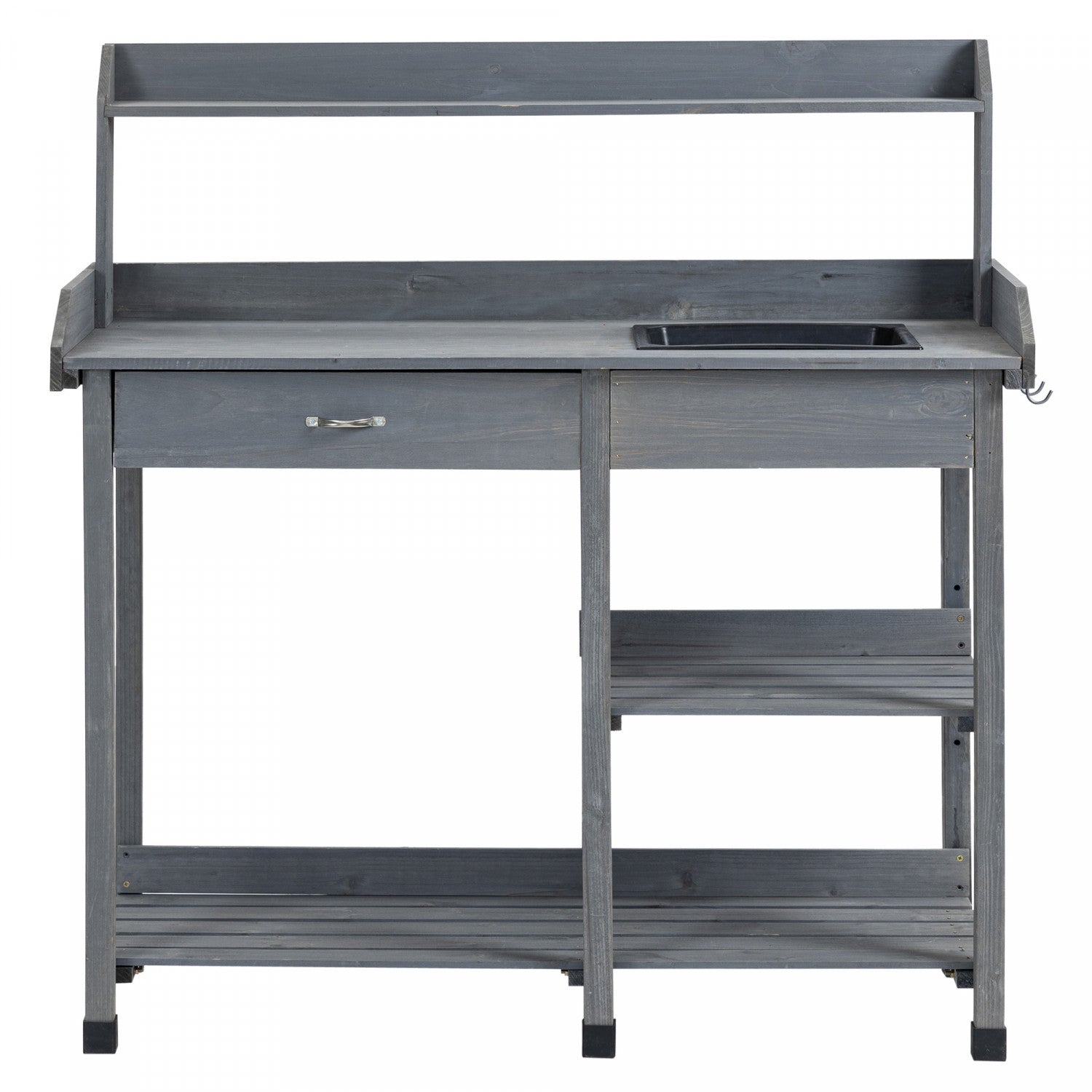 Outsunny Potting Bench Table Garden Work Bench Workstation With Drawer, Removable Sink, Storage Shelves And Hooks For Patio, Courtyards, Balcony