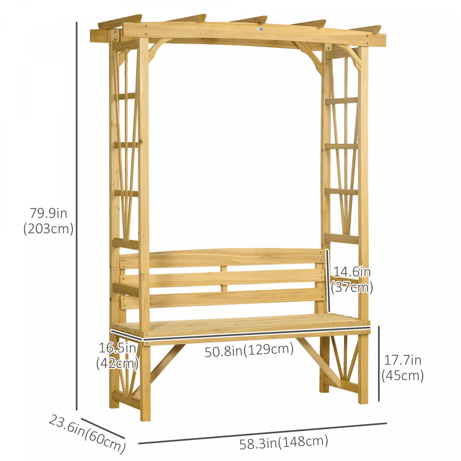 Outsunny Wooden Bench For 2 People For Vines/climbing Plant, Light Brown