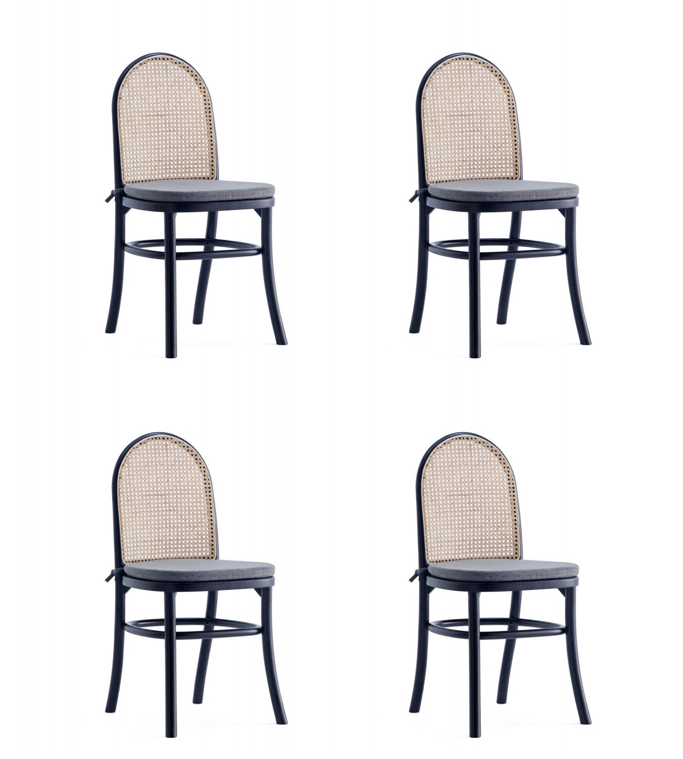 Paragon Industry Chic Cane Back Wood Upholstered Dining Chair in Black and Gray - Set of 4