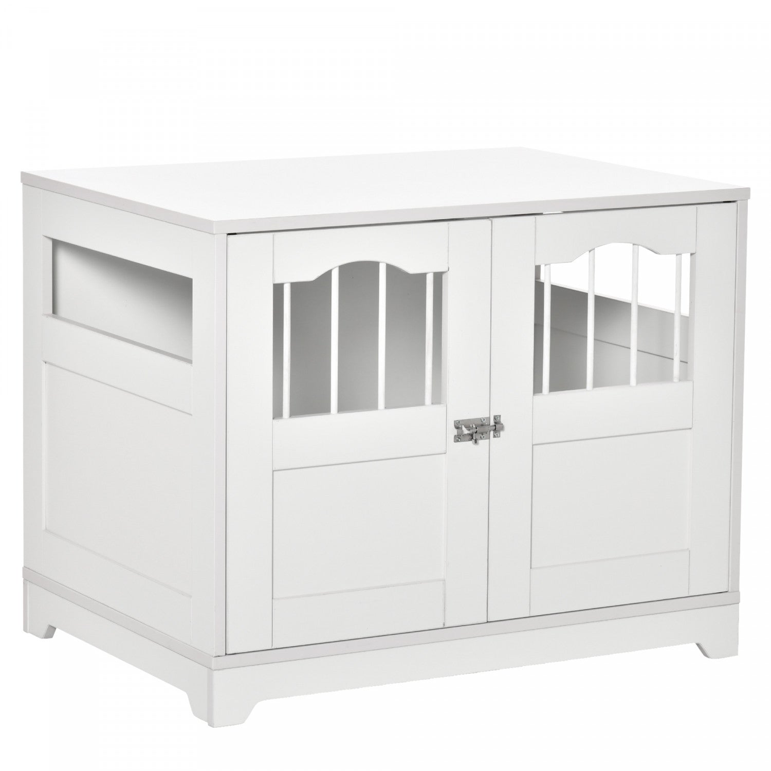 Pawhut 29.5" Wooden Dog Cage With Windows, End Table Furniture Style, Modern Pet Kennel With Lockable Doors Elevated Base For Small And Medium-sized Dogs, White