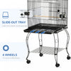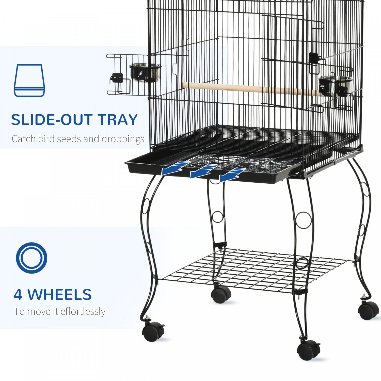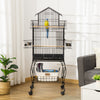 Pawhut 53.9'' Large Rolling Steel Bird Cage Bird House With Detachable Rolling Stand, Storage Shelf, Wood Perch, Food Container, Black