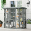 PawHut Catio Outdoor Cat Enclosure, 71"H Wooden Cat House with 5 Jumping Platforms, 2 Condos and Waterproof Cover, Walk-in Kitty Cage for 2–3 Kittens, Grey