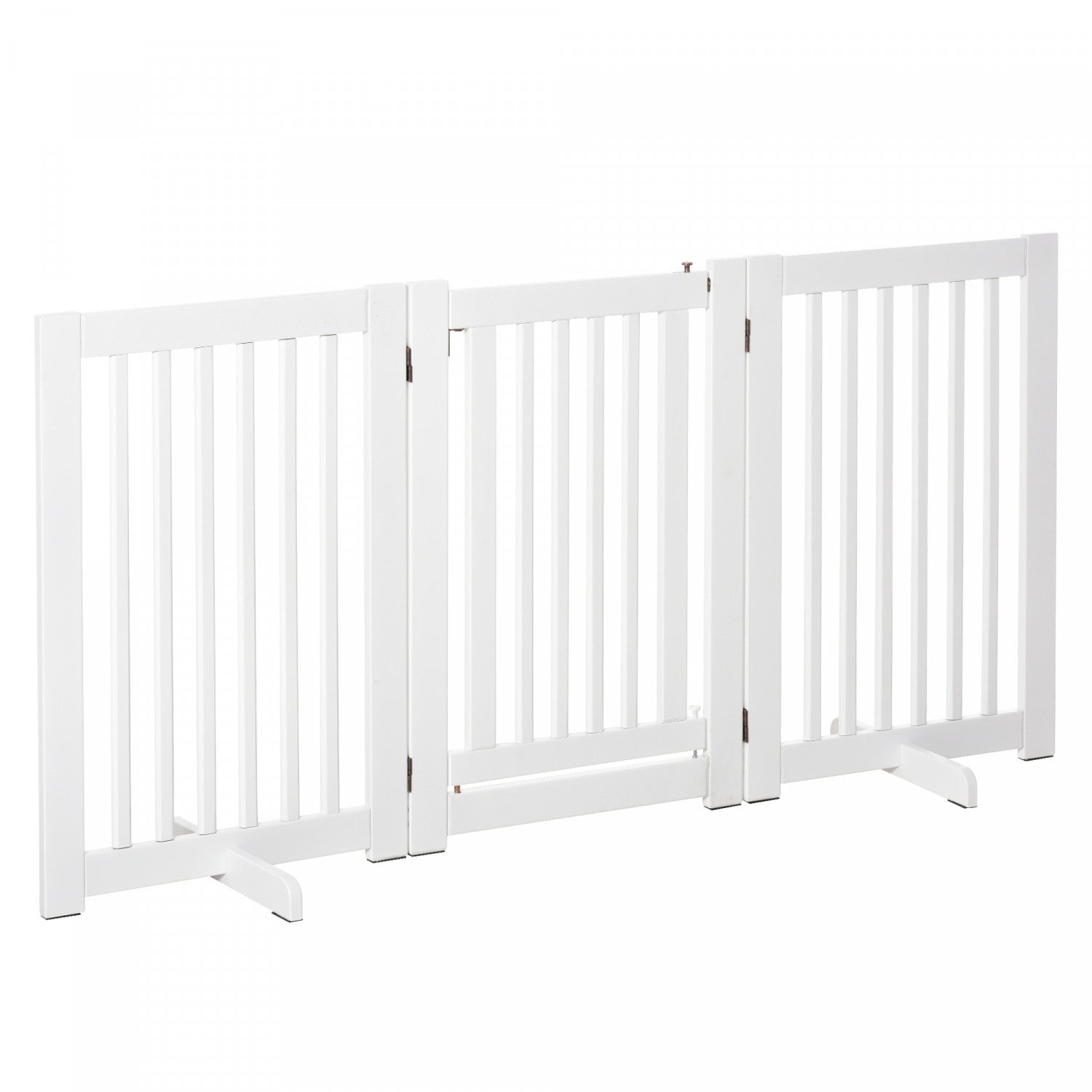 Pawhut Free Standing Pet Gate Indoor Wooden Dog Barrier Folding Safety Fence With Open Door Z Shape 3 Panel For Doorway Stairs