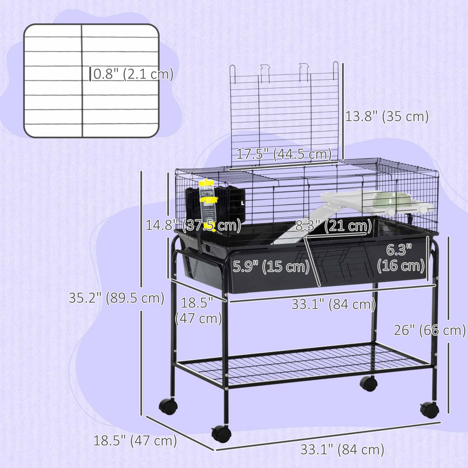 Pawhut Small Animal Cage, 35" Rolling Guinea Pig Cage With Detachable Stand, Water Bottle, Food Dish, Ramp, Wheels, For Rabbit, Bunny, Ferret, Chinchilla, Dark Grey