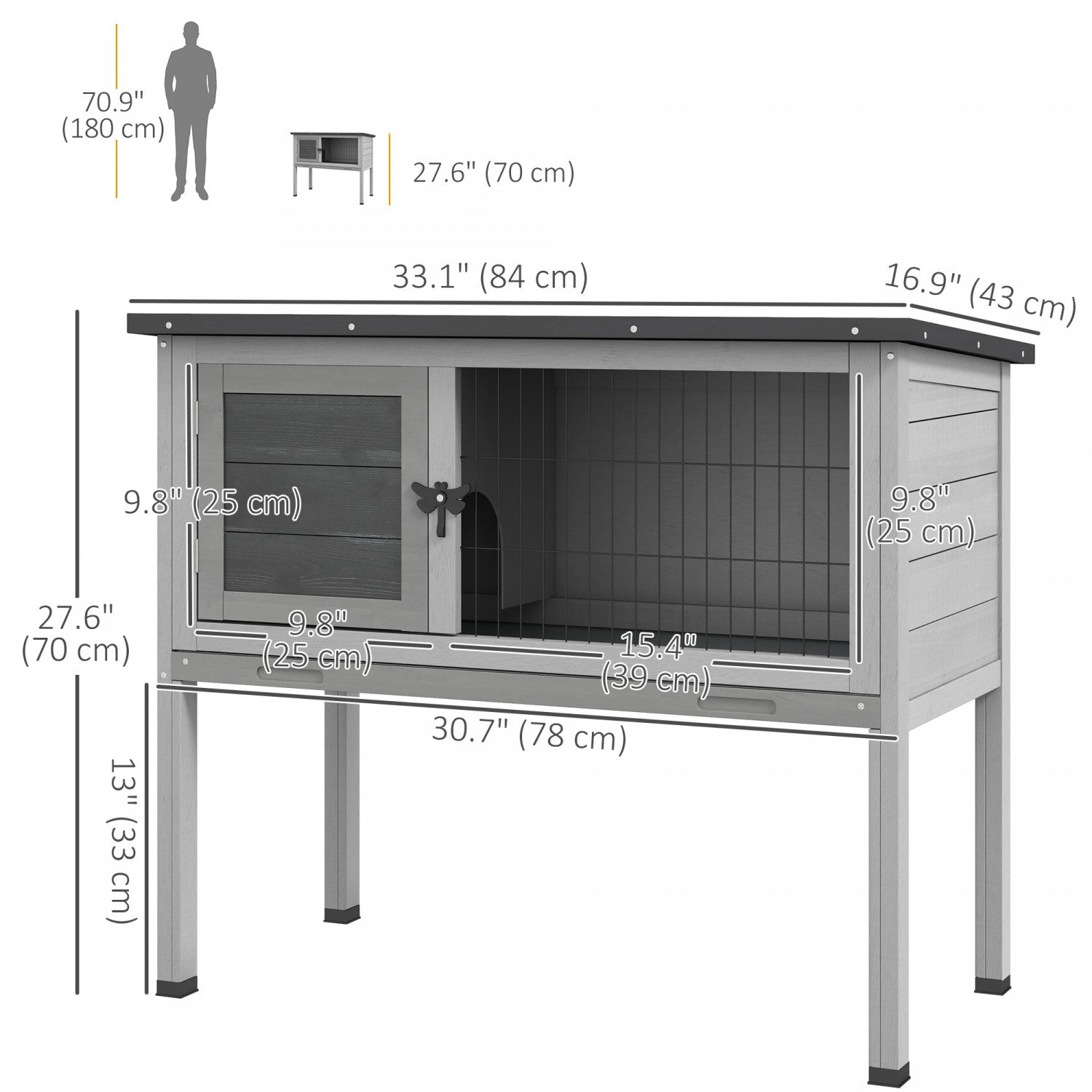 Pawhut Wooden Rabbit Hutch Bunny Small Animal House With Openable Asphalt Roof, Slide-out Tray, Indoor/outdoor, Grey