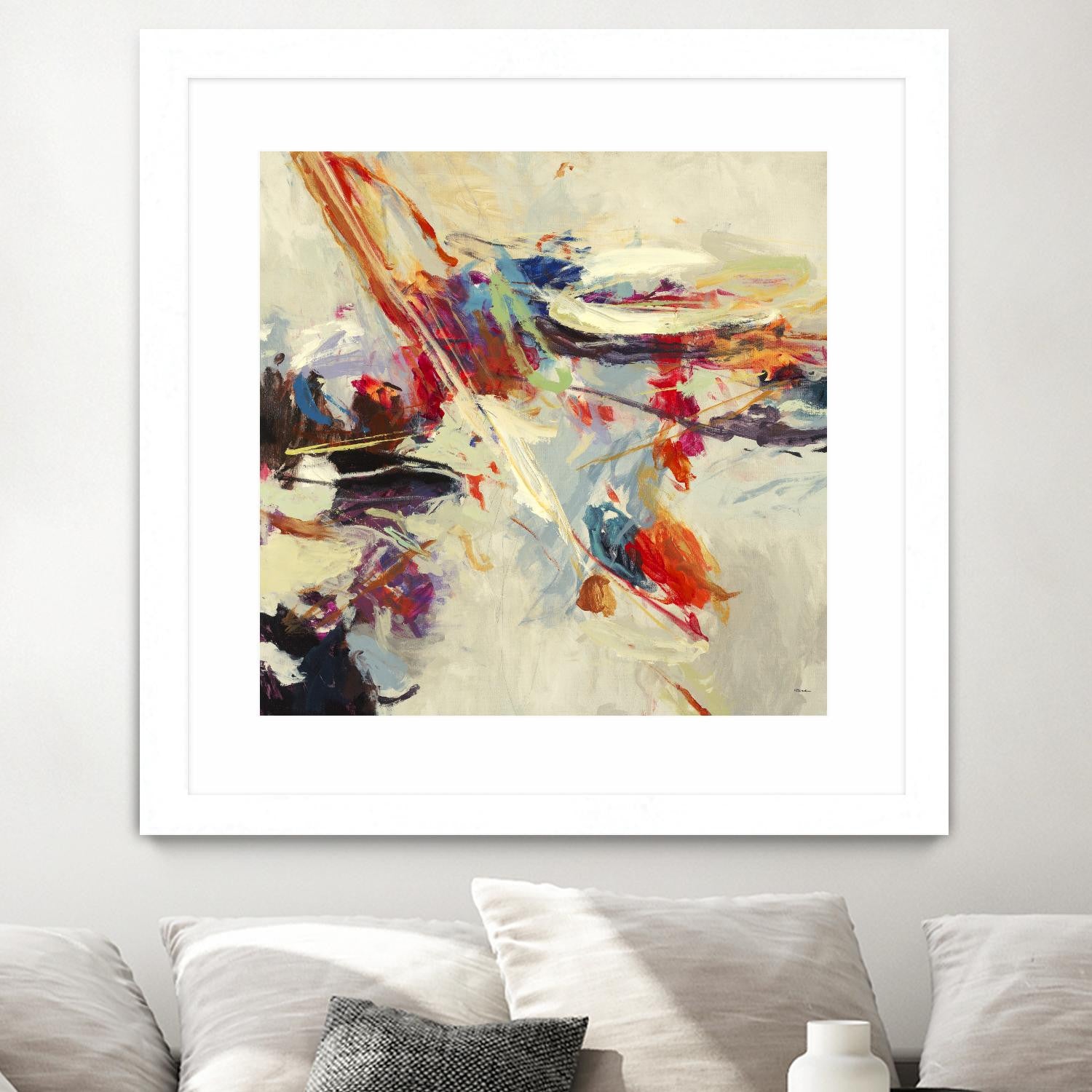 "Positive Energy I" Matted and Framed White 36x36 Wall Art