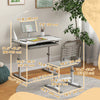 Qaba Kids Desk And Chair Set Height Adjustable Student Writing Desk Children School Study Table With Tilt Desktop, Led Lamp, Pen Box, Drawer, Reading Board, Cupholder, Grey