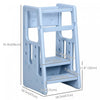 Qaba Toddler Kitchen Helper 2 Step Stool With Adjustable Height Platform And Safety Rail, Light Blue