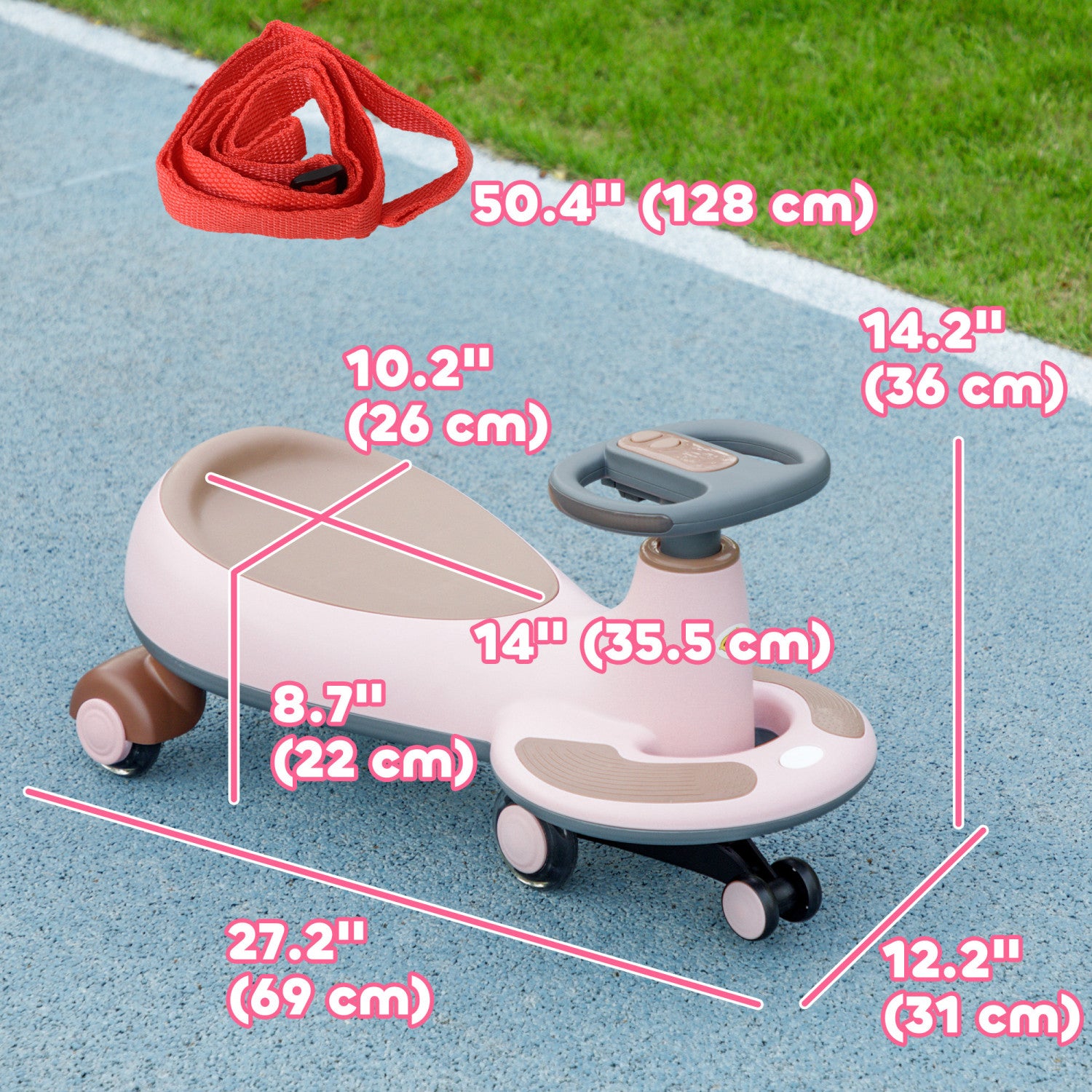 Qaba Wiggle Car For Toddlers 2-6 Years, Kids Swing Car W/ Parent Traction Rope, Music, Light, Ride On Car No Batteries, Gears Or Pedals, Twist, Turn, Wiggle Movement To Steer, Pink