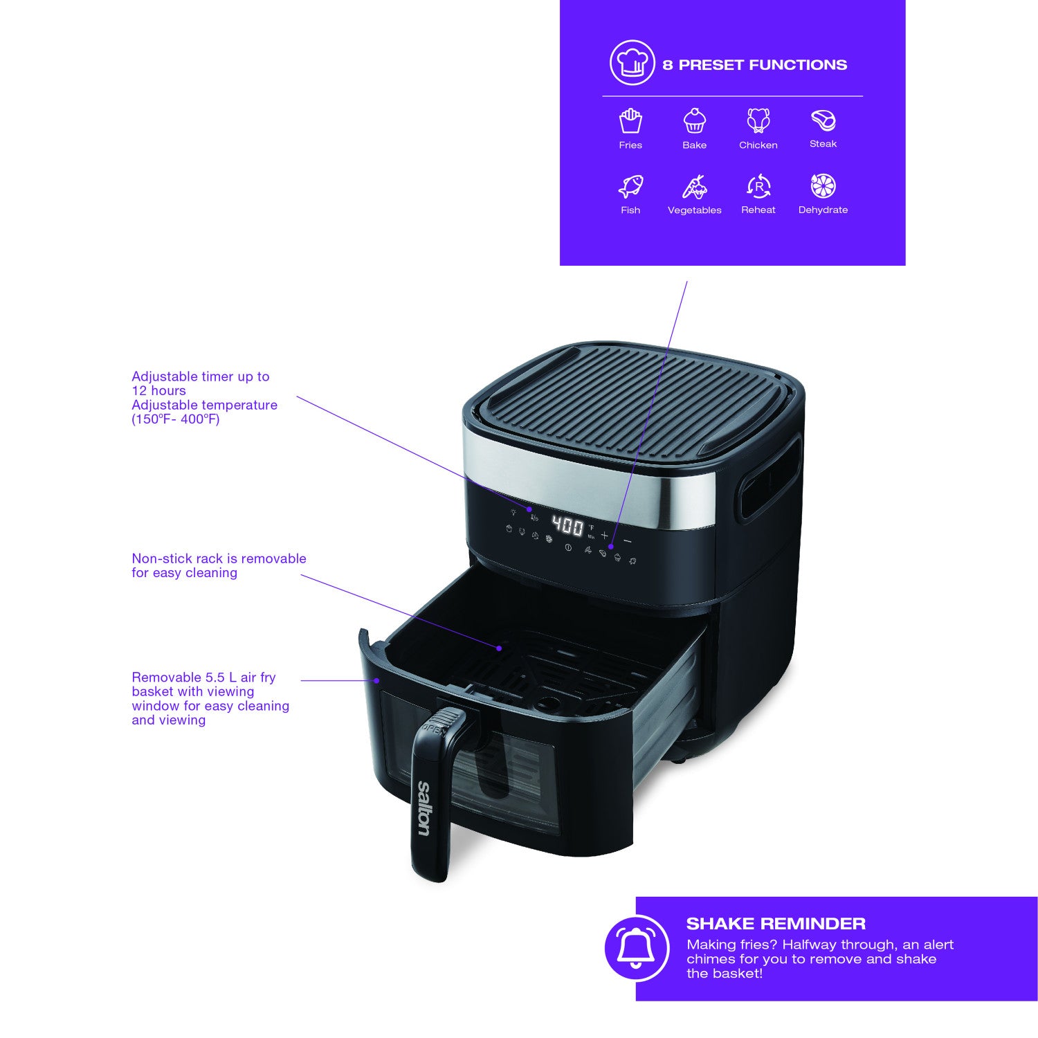 Salton 3-in-1 Air Fryer, Grill & Dehydrator Convection Toaster Oven