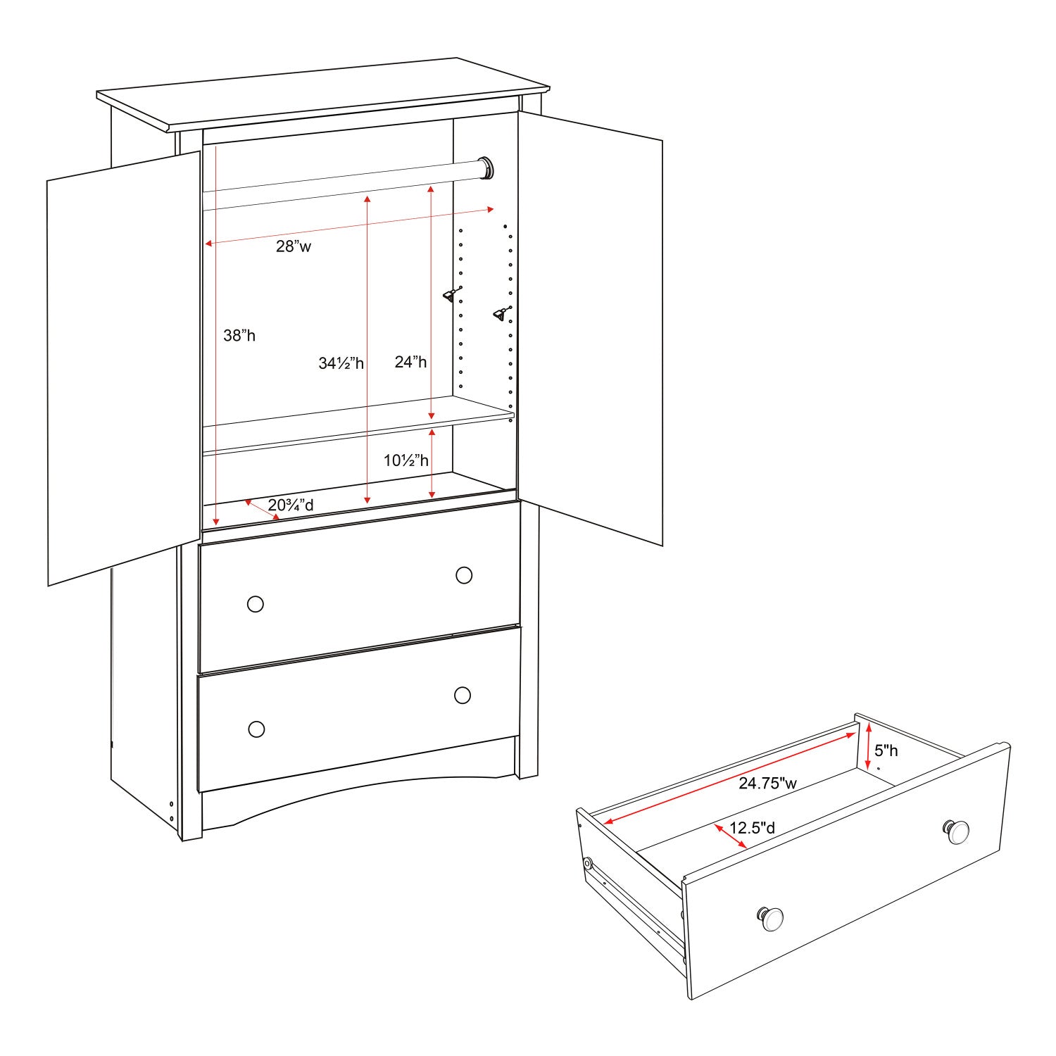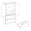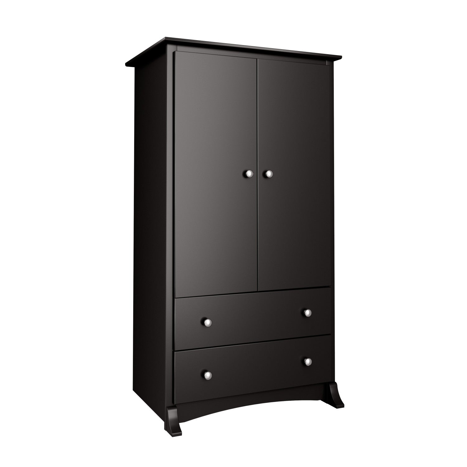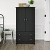 Introducing the prepac sonoma classic 2-door armoire closet, a perfect blend of chest of drawers and wardrobe. This armoire closet functions excellently as a dresser for bedroom wood, and provides generous storage shelves for your necessities. Made with a sturdy mdf backer and constructed from non-toxic, laminated composite woods, it promises durability without compromising on style. Sporting elegant traditional design elements like curved top edges, solid dark pewter knobs, side moldings, and a scalloped base panel, this piece adds a charming touch to any bedroom decor. Beyond the styling, it's all about convenience - two large drawers at the bottom run smoothly on metal glides with built-in safety stops providing ample storage space. Consider this not just as a dresser, but a multi-purpose kitchen pantry storage cabinet or pantry storage cabinet. The double-door cabinet is perfect for pantry organizers and storage, or can double up as a makeshift entertainment center for a small tv! The cabinet also comes equipped with an adjustable shelf that you can easily adapt to store shoes, transforming it into an effective shoe cabinet, or use as a clothing rack. The versatile nature of this piece allows it to act as a clothes rack in a bedroom, an armoire closet with its hanging rod attachment, or even a pantry storage cabinet in your kitchen. It comes ready to assemble with an easy-to-follow instruction booklet, and is backed by a 5-year manufacturer's limited warranty on parts. This functional armoire makes a great fit with the sonoma bedroom collection and is a storage solution that brings harmony between style and organization, be it in your bedroom, pantry, or living room.
