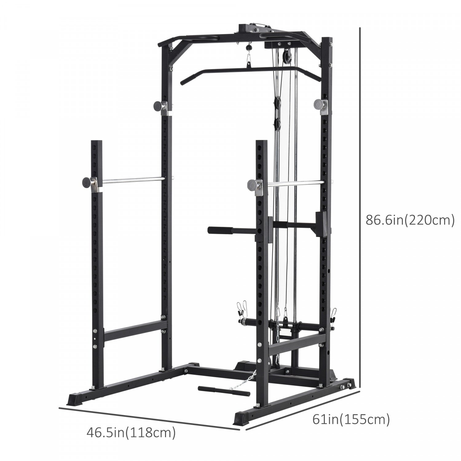 Soozier Power Cage, Power Rack With Lat Pulldown Attachment, Pull-up Bar, T Bar Row Landmine And Dip Handle, Strength Training Workout Station, For Home Gym, 800lbs Capacity