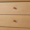 The 3-Drawer Nightstand brings a blend of fashion and function to your living space. Featuring a natural wood texture and delicate French brass pearl handles, this bedside table enhances any interior, from modern to vintage styles. With three spacious drawers and a top surface for essentials, it provides ample storage while maintaining a sleek look. The curved edges and heavy-duty base ensure safety, stability, and easy maintenance. Ideal for the bedroom or living room, this stylish nightstand adds both aesthetic appeal and practicality to your home.