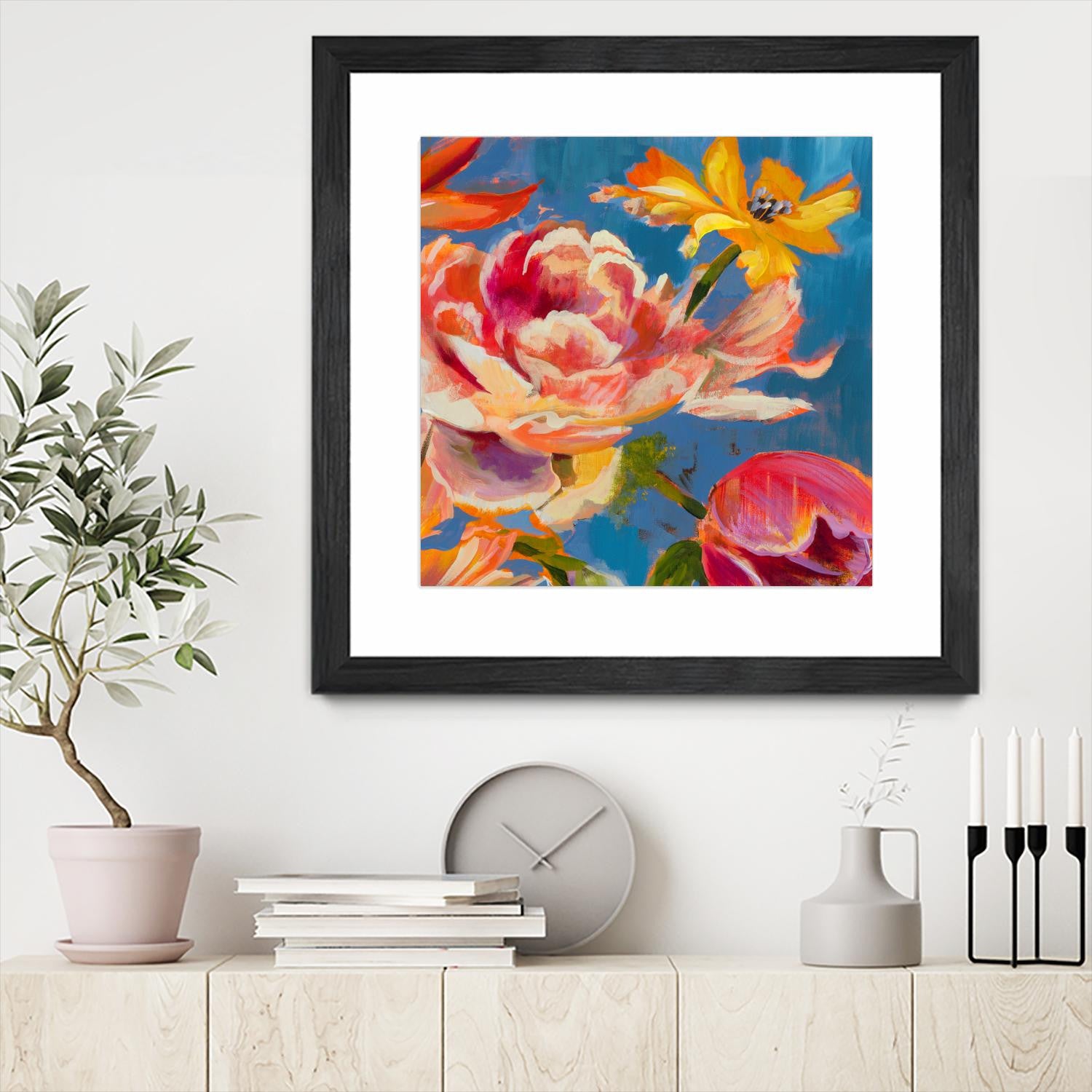 "Spring Bouquet V31" Matted and Framed Black 36x36 Wall Art