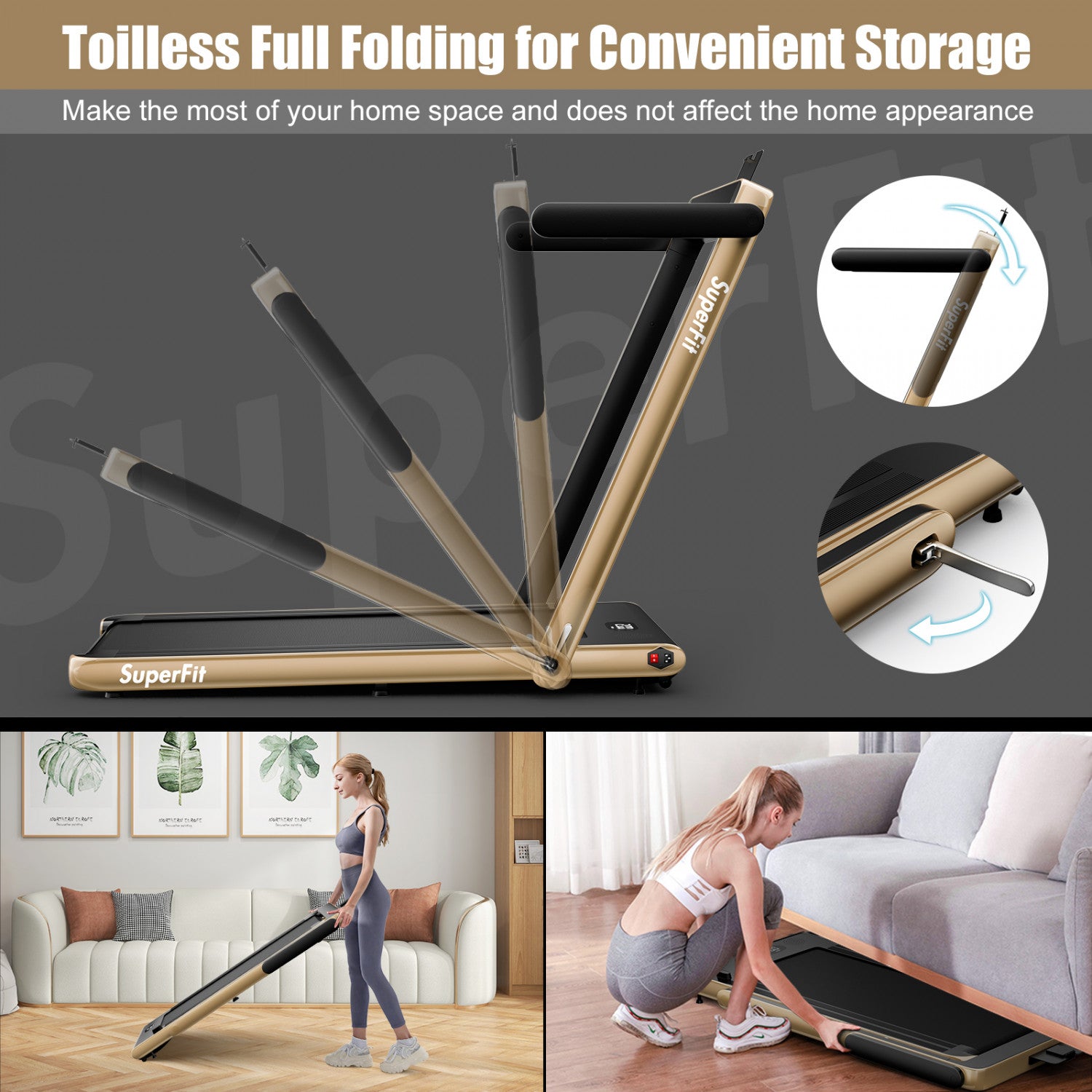 Superfit 2.25hp 2 In 1 Folding Treadmill W/ Speaker Remote Control App Yellow